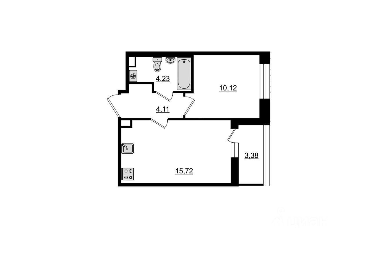 Продается уютная однокомнатная квартира в современном жилом комплексе, расположенном в монолитно-кирпичном доме 2025 года постройки. Объект находится на 1 этаже из 12, общая площадь составляет 35.87 кв. м, жилая площадь — 10.12 кв. м, а просторная кухня — 15.72 кв. м. Высота потолков — 2.77 метра, что создает ощущение простора и свободы. Окна квартиры выходят во двор, что обеспечивает тишину и уют.