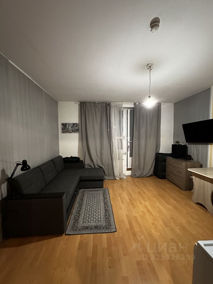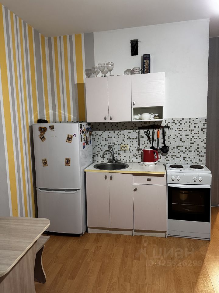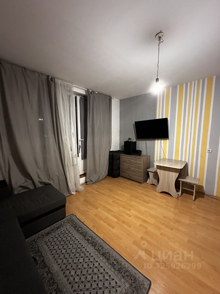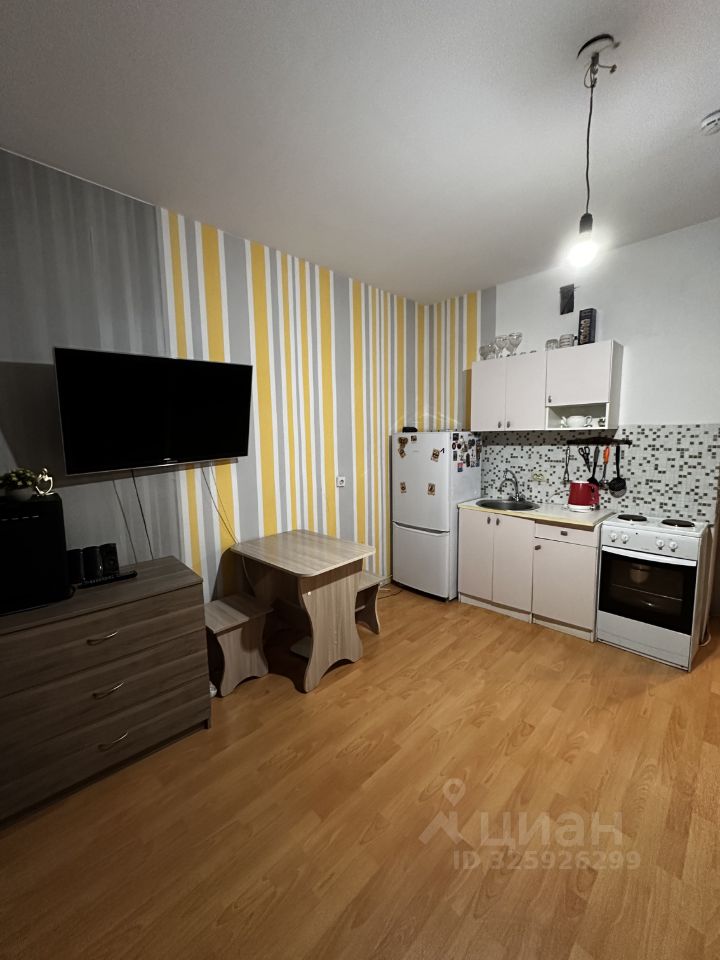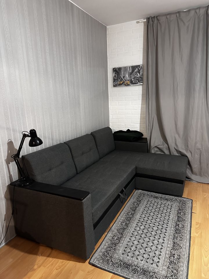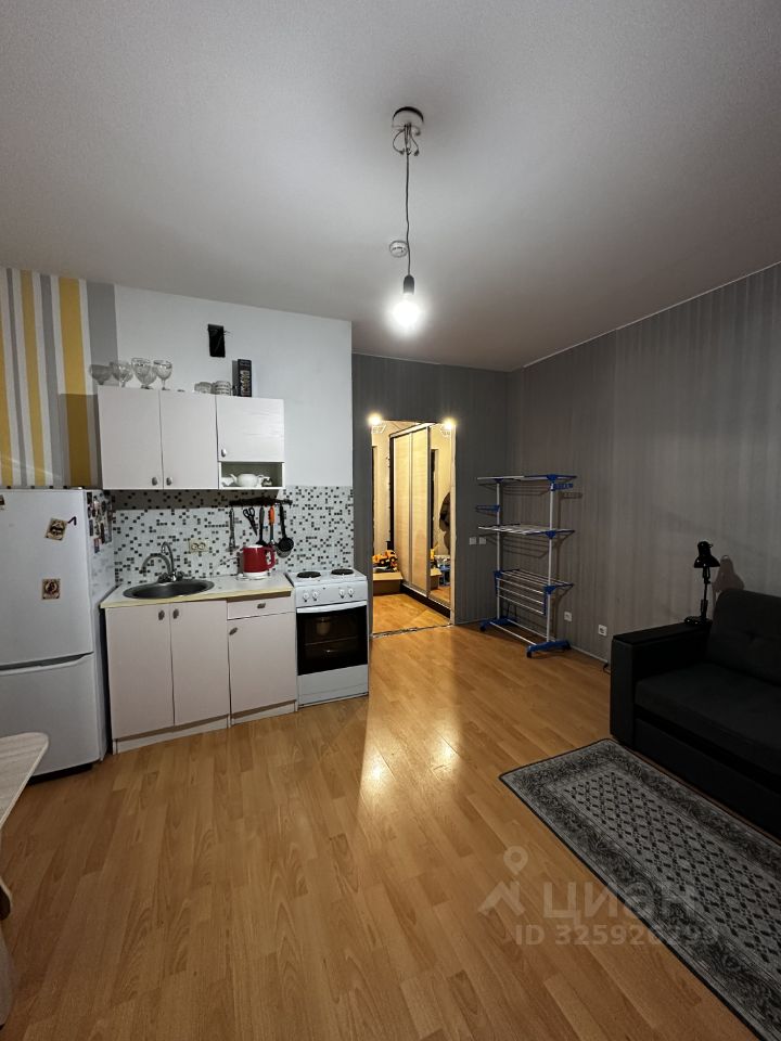 Студия полностью оборудована для жизни. Диван, холодильник, шкаф с зеркалом, комод, телевизор, стиральная машина. (все, что на фото)