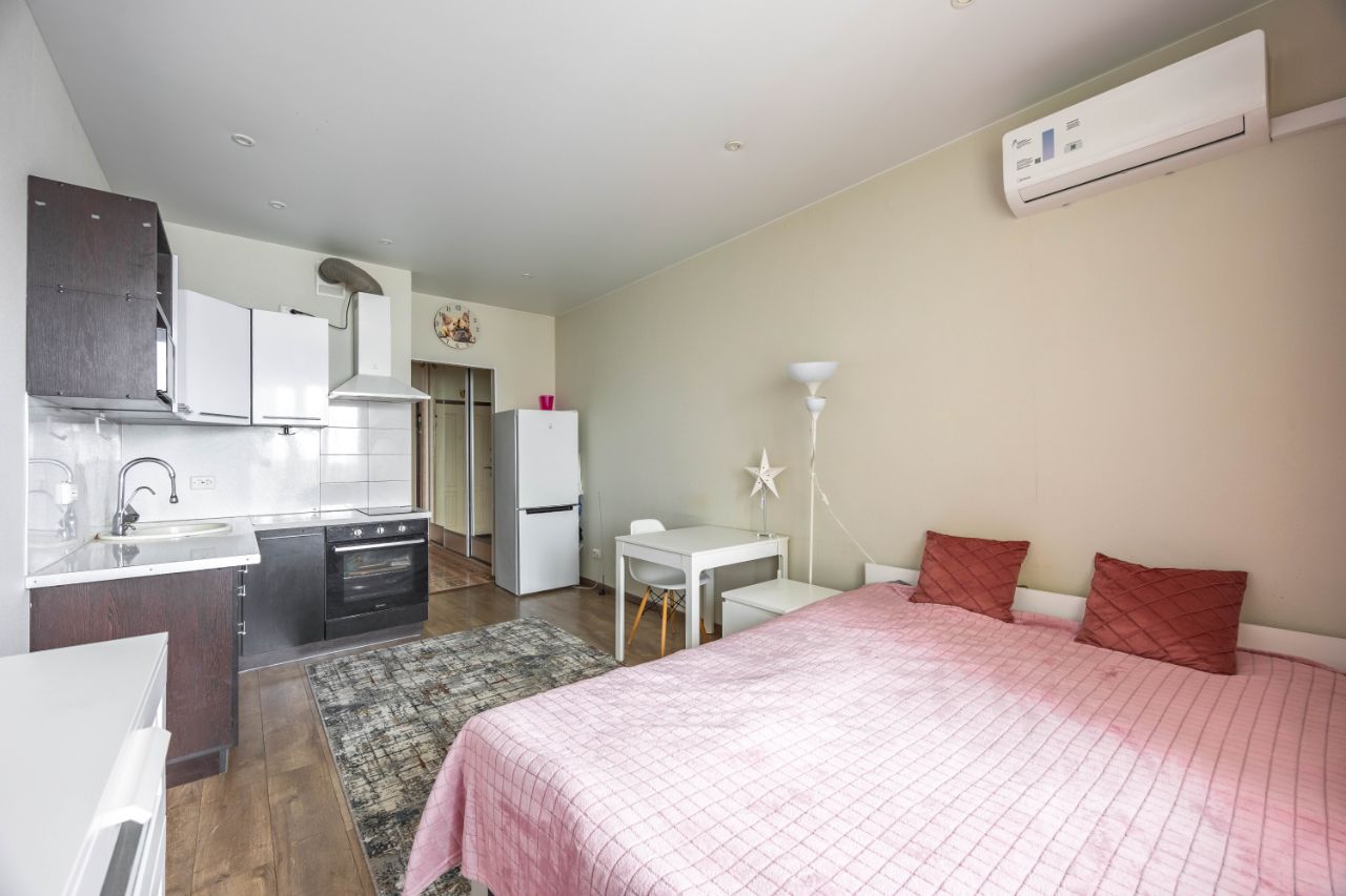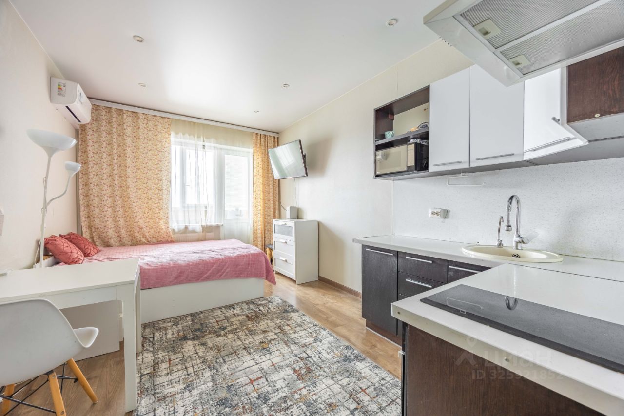 • Студия расположена на 20 этаже 24-этажного дома. • С балконом. • Общая площадь 23,6 м², жилая — 15,7 м². • Высота потолков 2,75 м. • Окна квартиры выходят на детскую площадку, в тихий двор. • В квартире сделан хороший ремонт. • В квартире вся техника и мебель — по договорённости. • Установлен кондиционер, что является плюсом для студии.