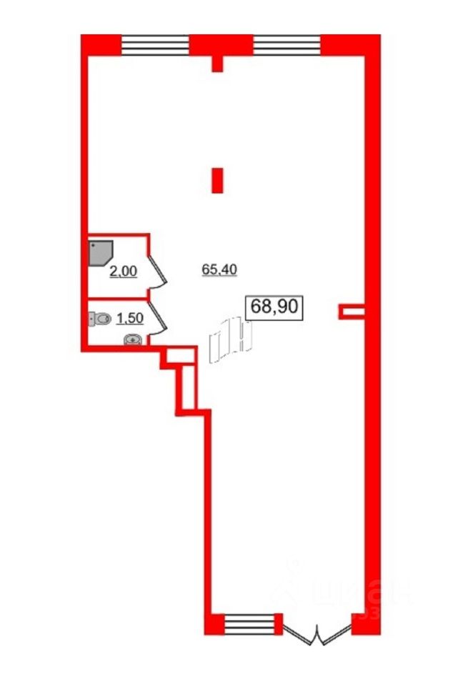 ТЕХНИЧЕСКИЕ ХАРАКТЕРИСТИКИ: - общая площадь 68,9м.кв. - высота потолков 4,1 м.
