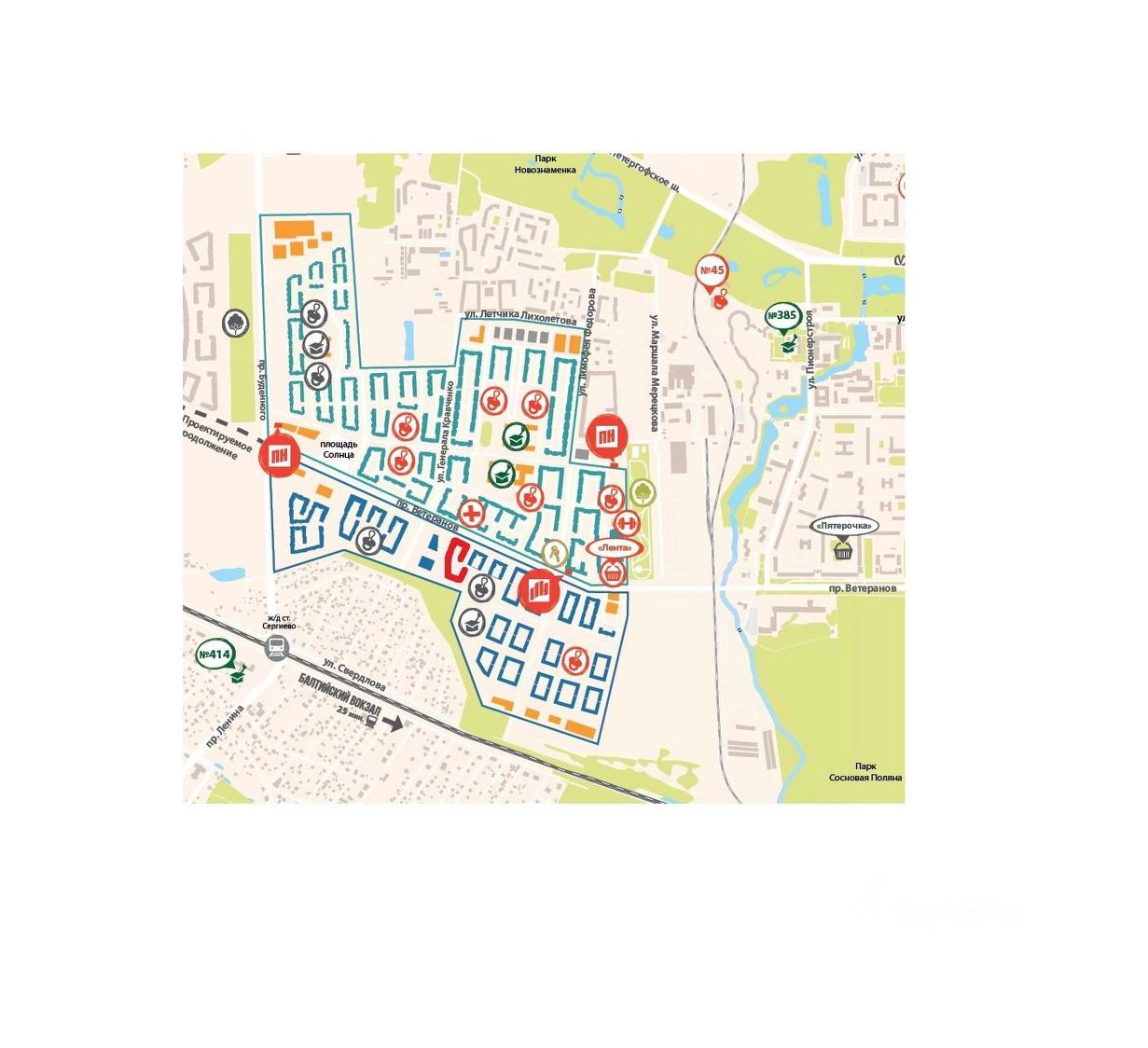 Предлагается в аренду торговое помещение в активно заселяющемся ЖК Солнечный город. Резиденции по адресу: просп. Вeтepанoв, 206.