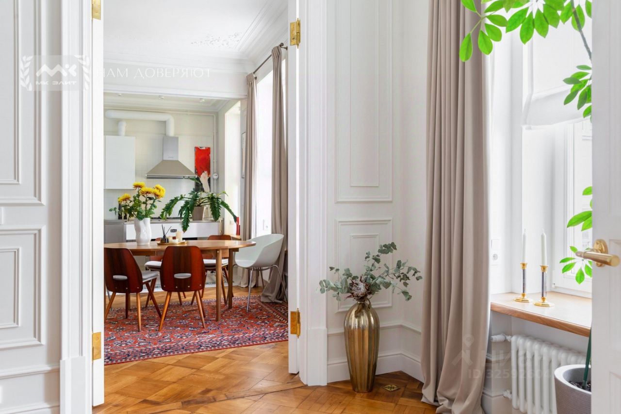 Два года кропотливой работы: снятие масляной краски с потолков для раскрытия изысканных лепных узоров, реставрация анфилад, восстановление глазурованных изразцов печей, ремонт полов из вековой лиственницы. Каждый элемент здесь отреставрирован с уважением к истории и совершенством в мелочах. Даже светильники были выбраны с такой тщательностью, что их оценили специалисты ведущего музея Санкт-Петербурга. Эта квартира уже стала героем кинематографа: ее харизма и уникальность вдохновили создателей одного из самых популярных сериалов.