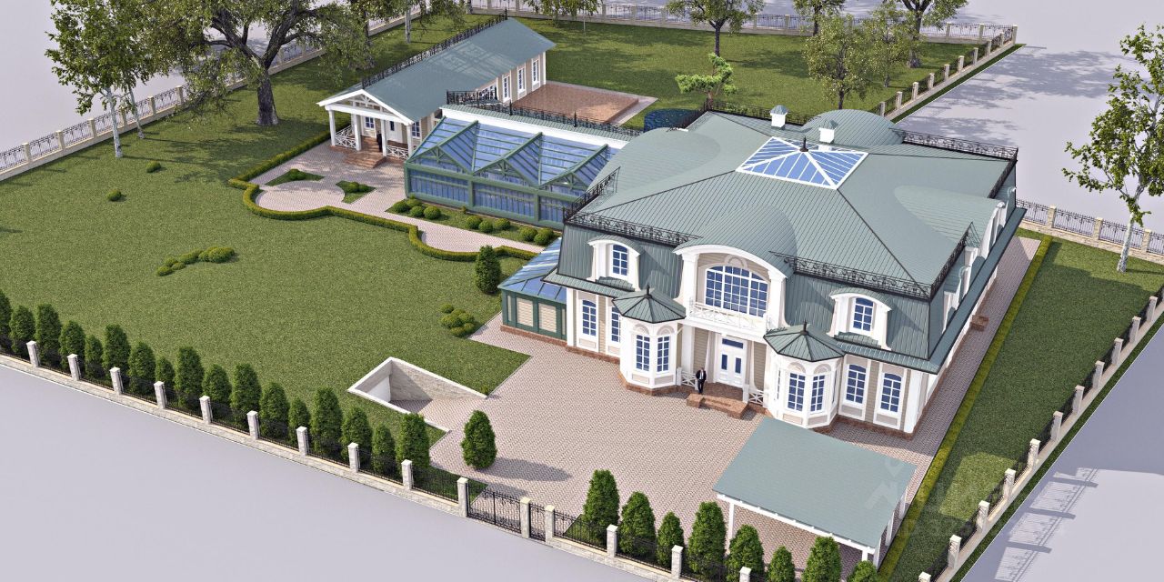Площадь участка: 6073 м² (61 сотка) Общая проектная площадь жилых домов: 1162 м² Вспомогательные помещения по проекту: 473 м²