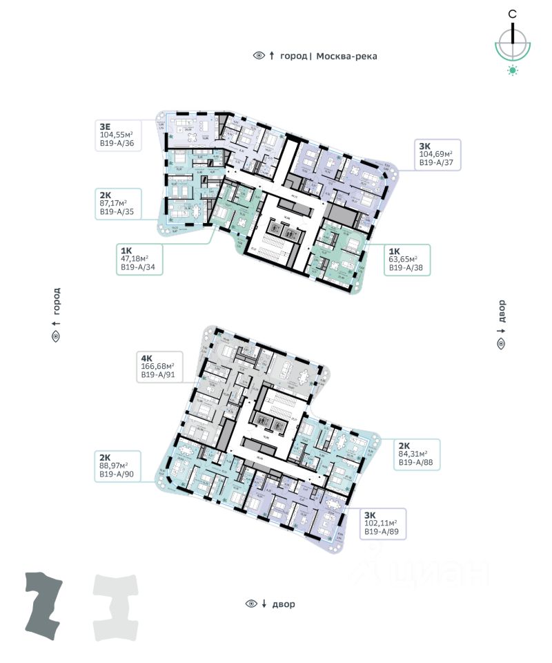 В продаже — четырехкомнатная квартира, общей площадью 166,68 кв. м. Квартира расположена на седьмом этаже двенадцатиэтажной секции корпуса класса Адвансд в новом районе СберСити, который строит Сбер. Дом находится на второй береговой линии Москвы-реки.