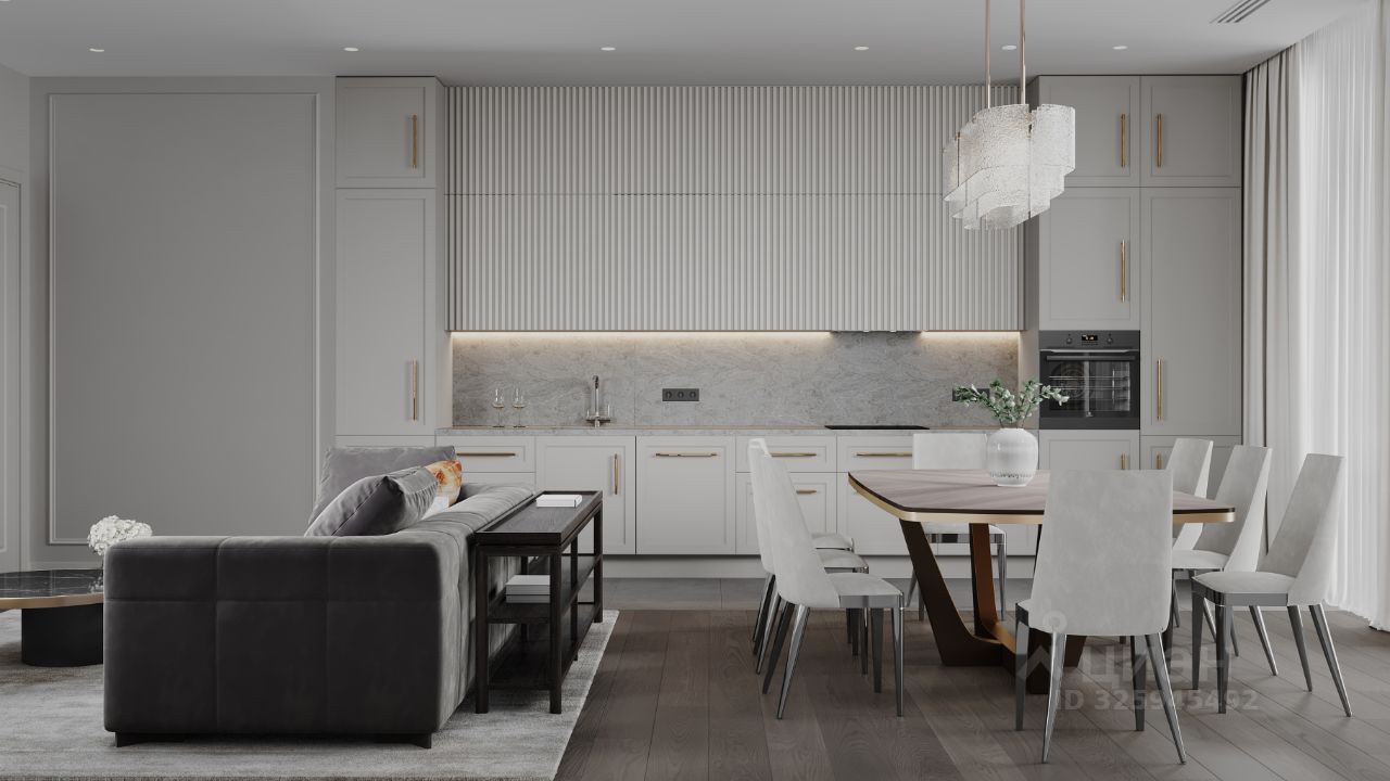 В продаже — двухкомнатная квартира с чистовой отделкой, общей площадью 83,32 кв. м. Квартира расположена на первом этаже одинадцатиэтажной секции дома класса Адвансд в новом районе СберСити, который строит Сбер. Дом находится на первой береговой линии Москвы-реки.
