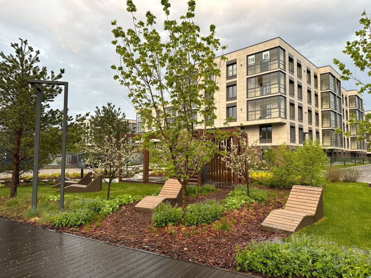 - Жилой комплекс находится под круглосуточным видеонаблюдением и имеет собственный зеленый парк во дворе без доступа для автомобилей.