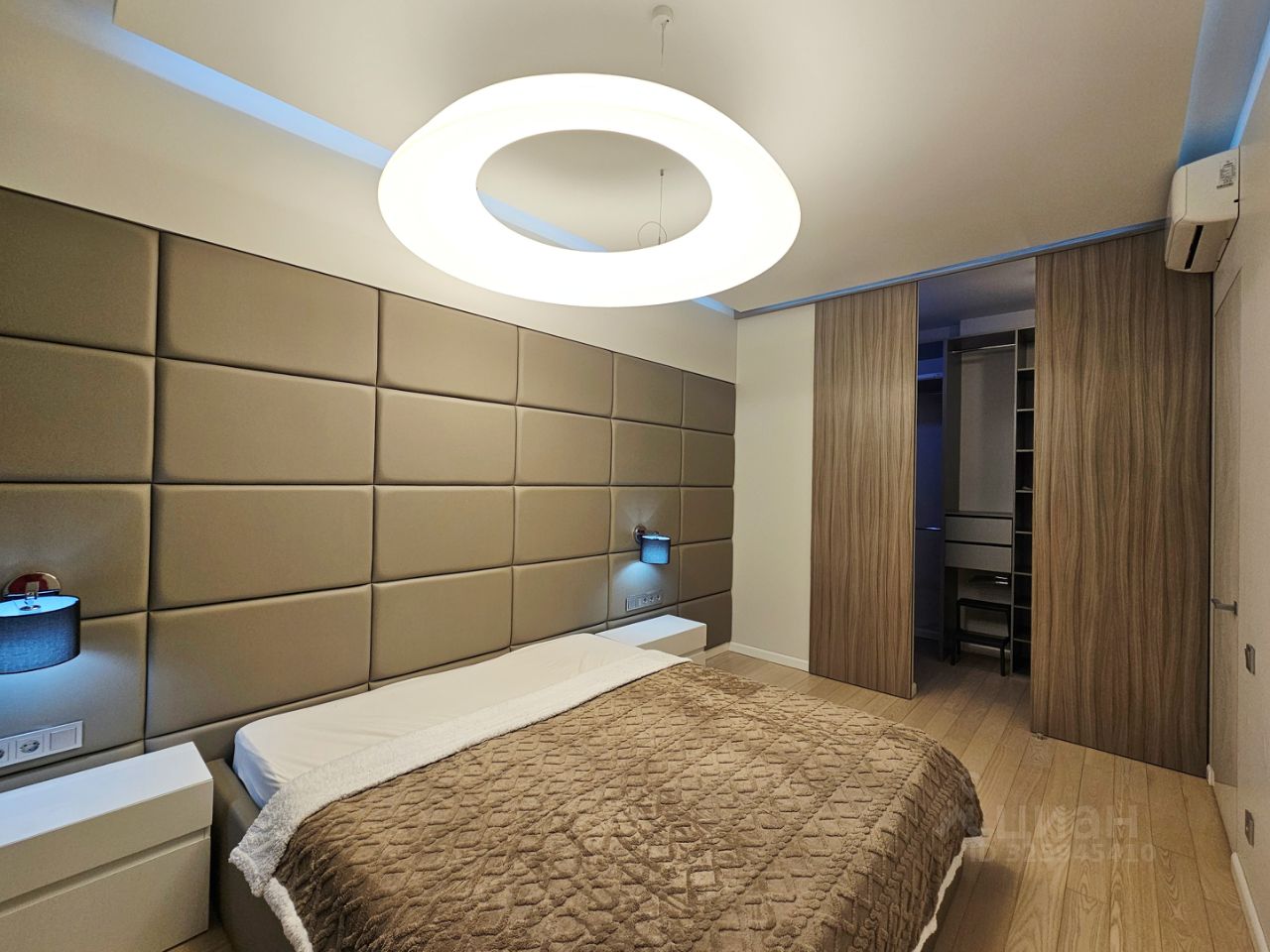 В спальне оборудована просторная гардеробная комната.