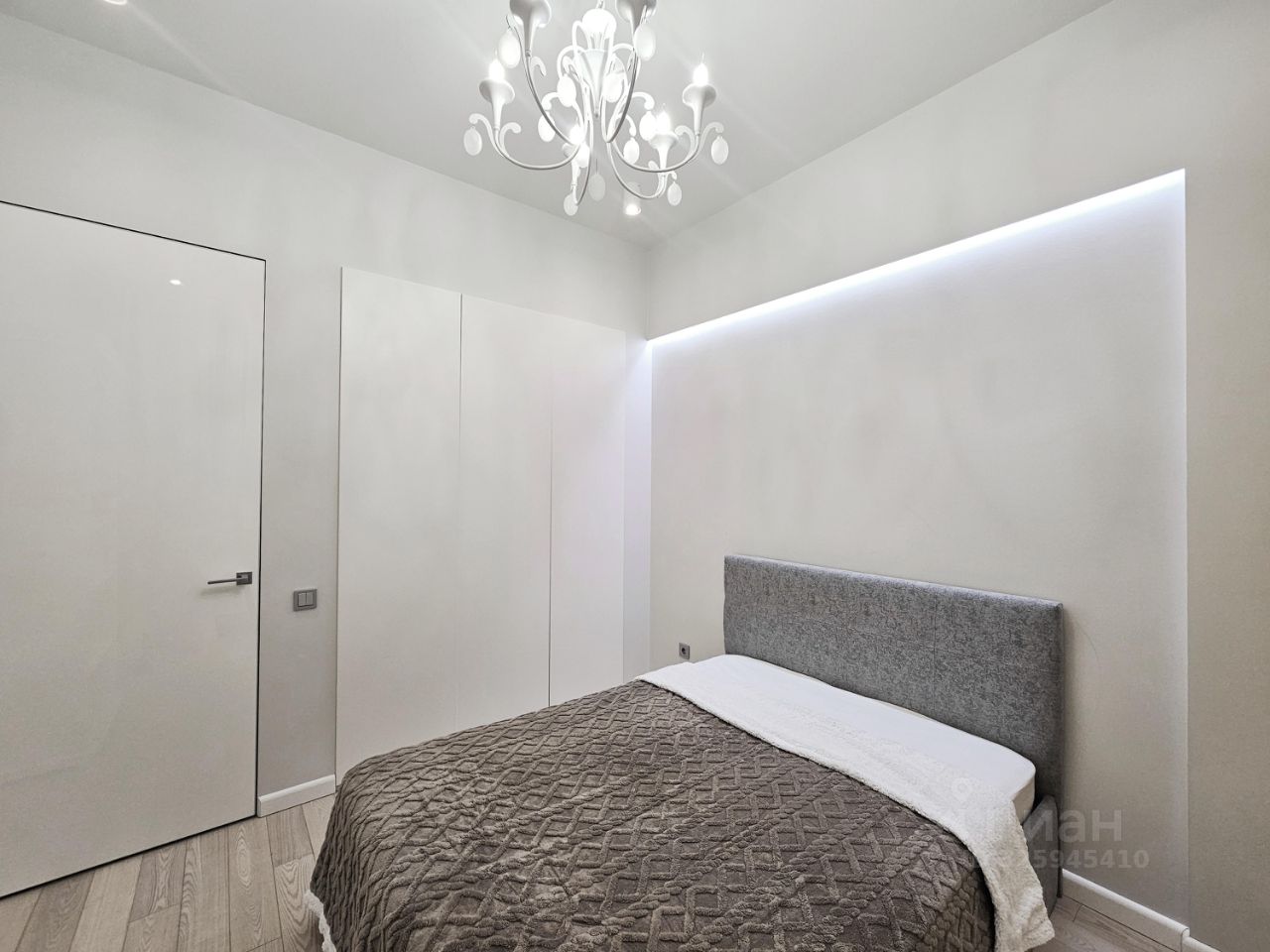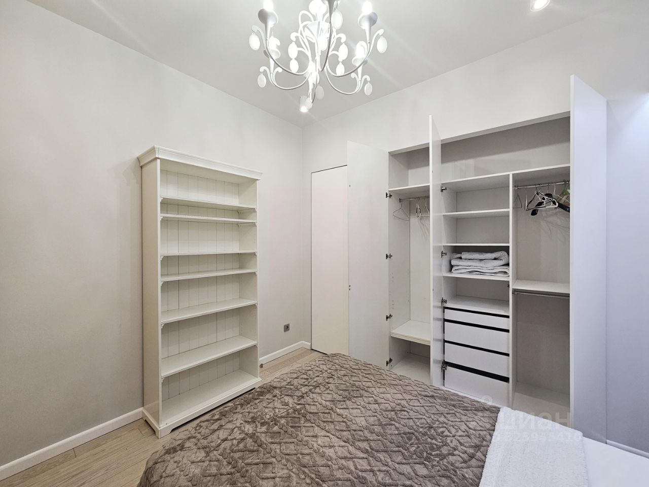 Во второй комнате- вместительный встроенный шкаф, кровать. Возможно обсудить вывоз кровати.