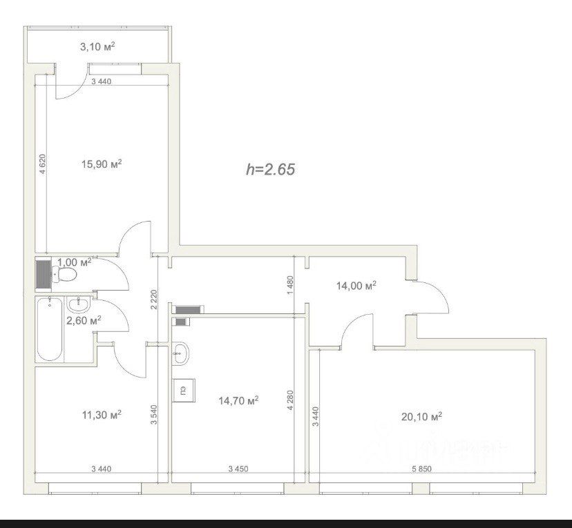 - Планировка: три изолированные комнаты, большая кухня, раздельный санузел, коридор, застекленный балкон.
