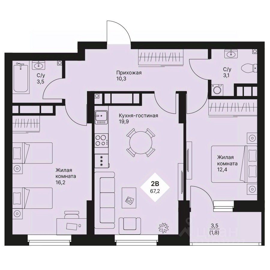 Общая площадь67,15 м2