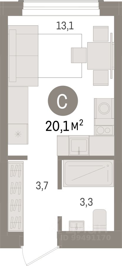 Студия в квартале Авиатор. Особенности планировки: предчистовая отделка. квартиры в нашей базе: АВТ03-Ж4.4.7.