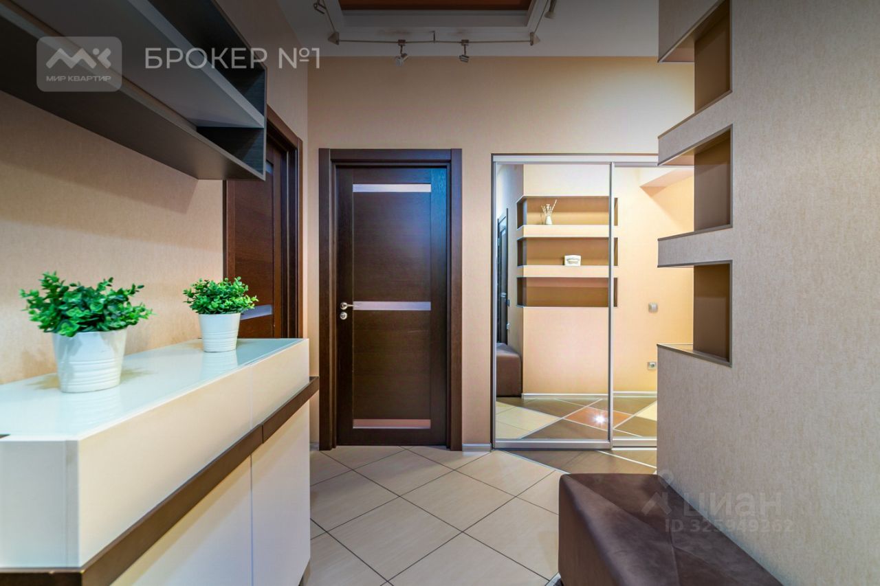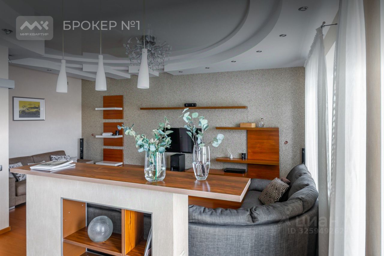 Квартира расположена на 6/9 этаже, есть большой лифт. В квартире две спальни 15.9 (с гардеробной 5.5 кв.м.) и 14.8 кв.м., гостиная 21.5 кв.м., кухня 22.5 кв.м.. Санузел 5.9 кв.м. и туалет 1.8 кв.м. Есть две застекленные лоджии 21 и 3.3 кв.м.. Прихожая 10.0 кв.м. Кухня полностью оснащена элитной импортной бытовой техникой: холодильник, духовой шкаф, электрическая плита, посудомоечная машина. В квартире есть система вентиляции и кондиционирования.