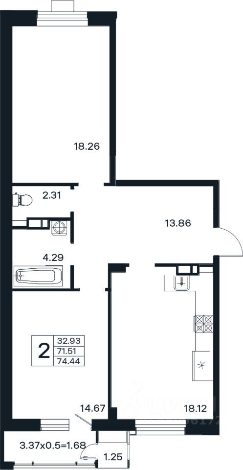 продам 2-к, Шоссе Нефтяников, 2621 150 000 ₽