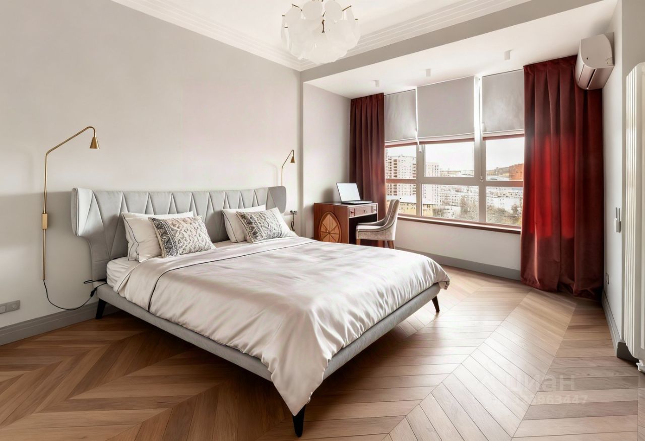 О КВАРТИРЕ Великолепные виды на гостиницу Украина, МИД, Москва-Сити, Красногвардейские пруды Планировка включает кухню-гостиную 34 квм, 3 спальни 13,17 и 19 квм, гардеробную, постирочную, 2 санузла и кладовую В гостиной выделены столовая, лаунж-зона и зона для семейного общения Элегантная отделка в классическом стиле В отделке использовано дерево, натуральный камень и индийский гранит. На полу паркет ''французская елочка''