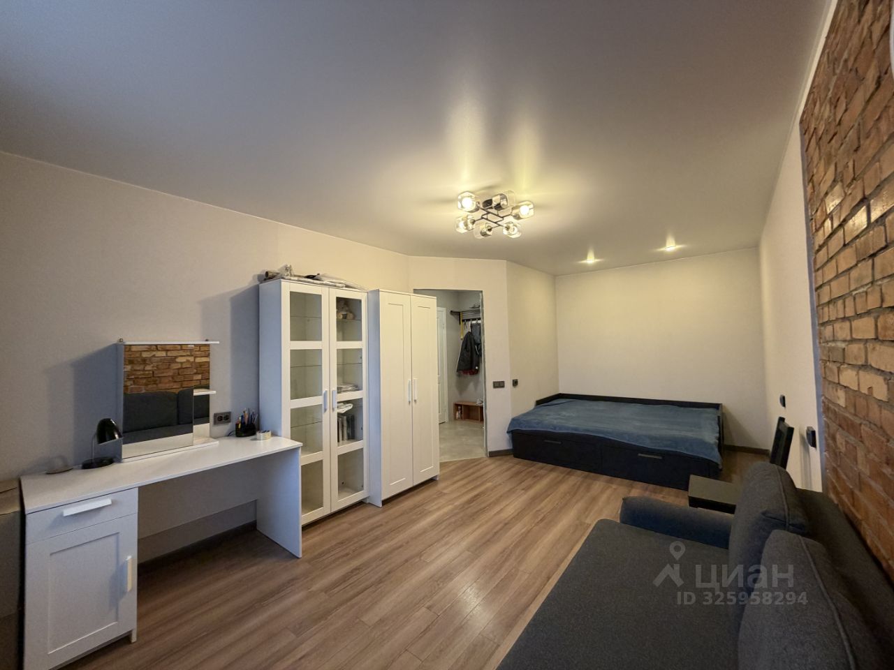 Комната: 18 кв. с выходом на остеклённую лоджию, двуспальной кроватью и диваном. Вместительным 2-х створчатым шкафом, также организованно рабочее место (стол и т. д).