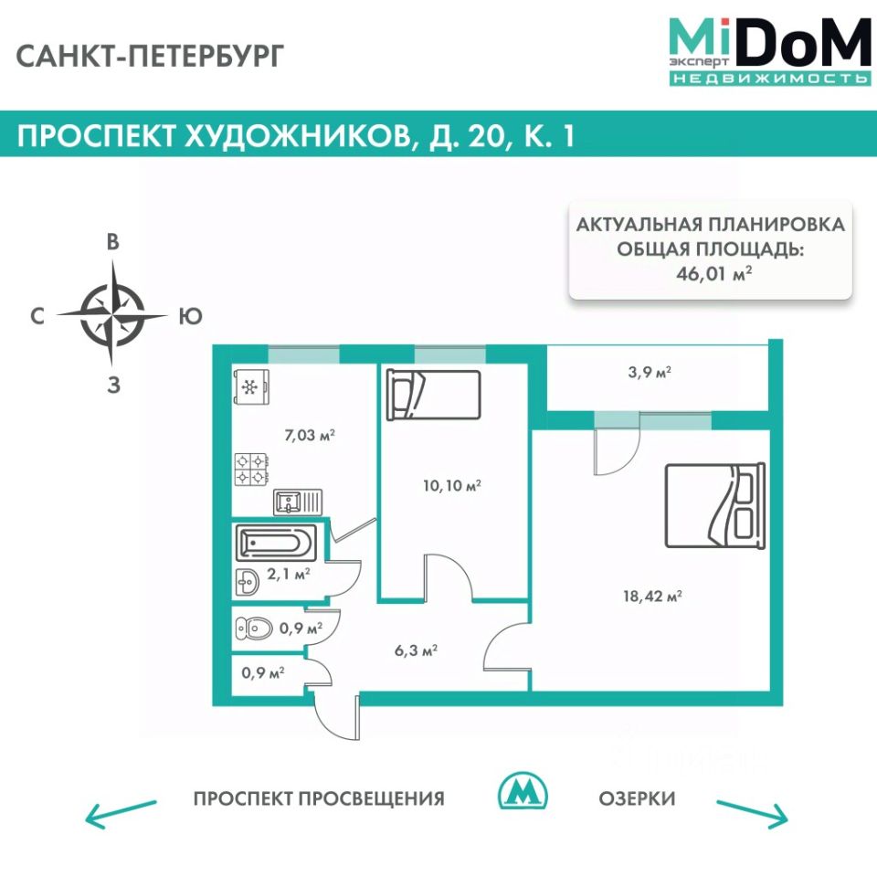продам 2-к, Художников проспект, 20 корп. 18 500 000 ₽