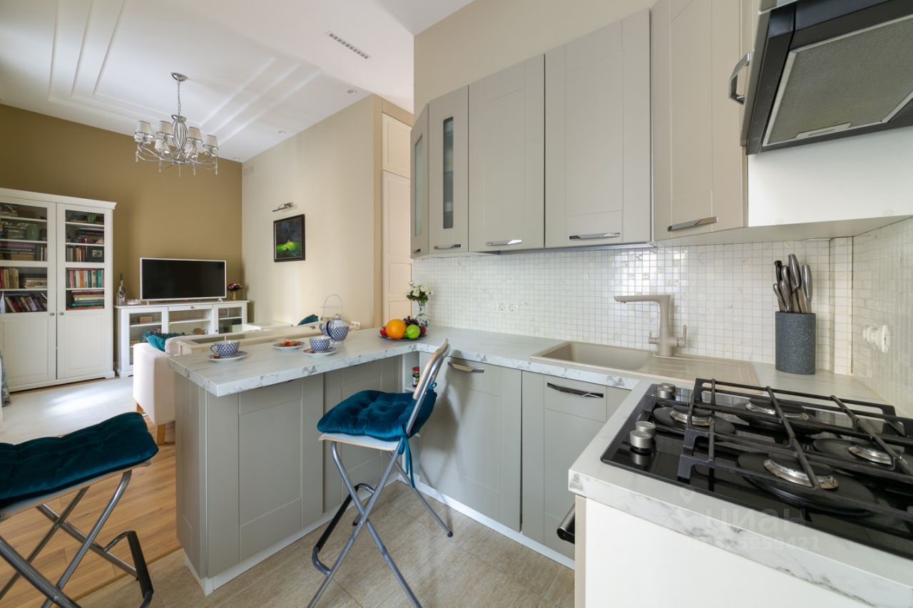 Просторная кухня-гостиная 17 м² и уютная, небольшая спальня идеально подходят для спокойной, размеренной жизни, в историческом центре Санкт-Петербурга.