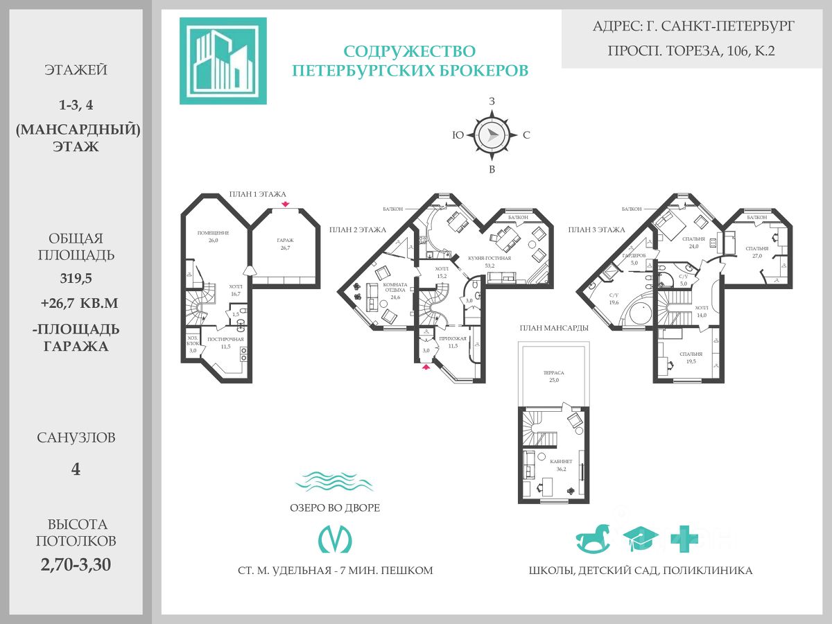 Инфраструктура. Сразу три станции метро: Удельная — 1,1 км, Озерки — 2,6 км, Площадь Мужества — 3 км. В пешей доступности: парк Сосновка и Удельный парк — для прогулок, бега и жизни с питомцами. Район насыщен, но не перегружен: школы, гимназия, лицей, школа искусств, детские сады, аквапарк, фитнес, медицинский центр, МФЦ, торговые центры, рестораны, магазины — всё рядом, без логистических подвигов. Выезд на ЗСД — 10 минут. Финский залив - вполне доступен по первому желанию.