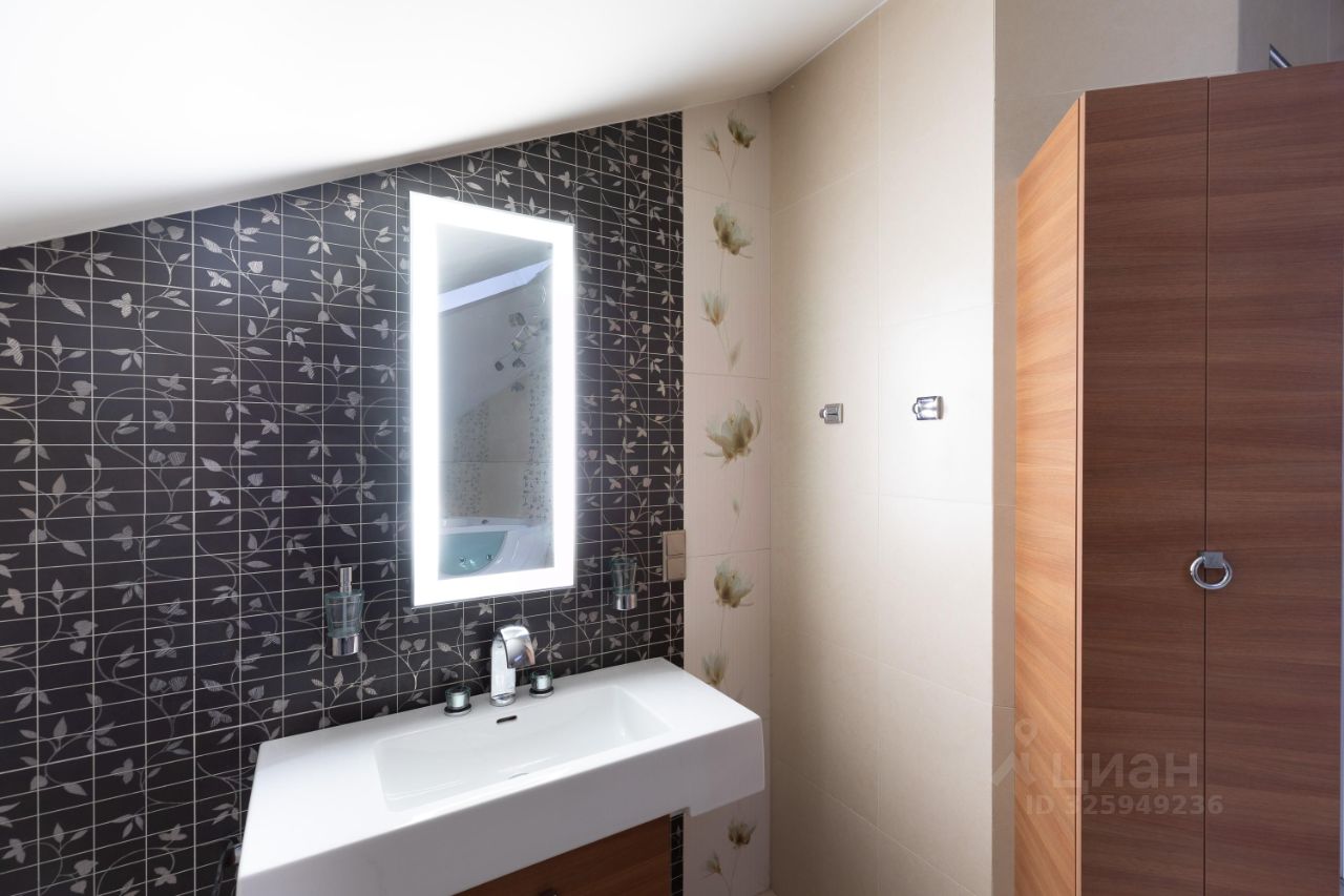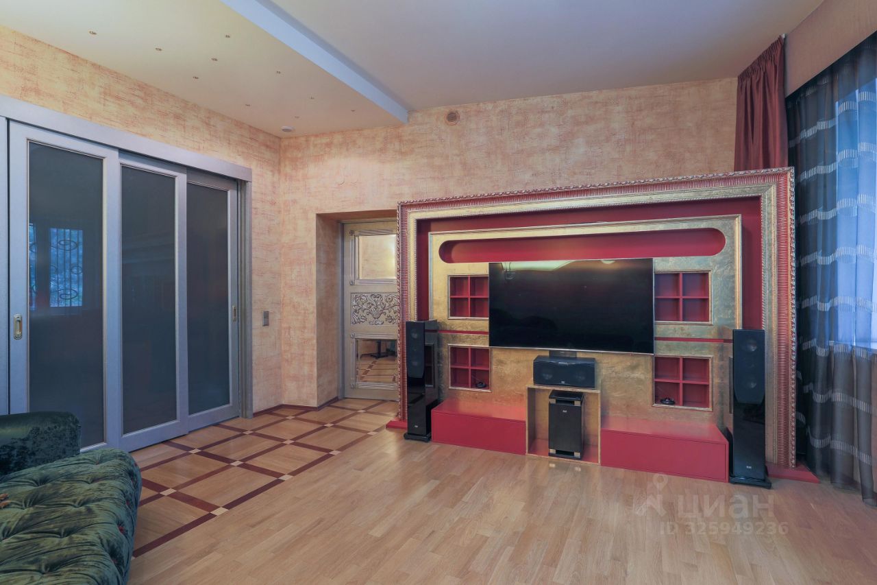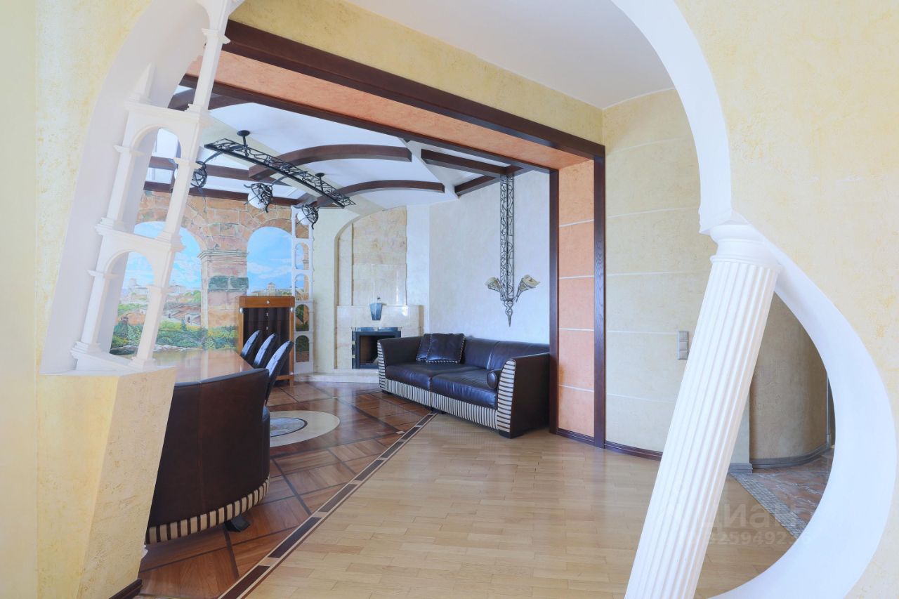 О квартире, которая занимает четыре этажа: Выполнен дизайнерский ремонт с использованием европейских материалов и уникальных элементов ручной работы. В гостиной — действующий камин. Не декоративный. Настоящий. Двери — на заказ. На полу — наборный паркет из ценных пород дерева. Просторная кухня полностью укомплектована техникой и мебелью. Квартира занимает четыре уровня: — нижний этаж — гараж на два автомобиля, — второй и третий — жилые этажи с балконами, — четвёртый — просторная открытая терраса. Планировка выверена: большая кухня-гостиная, прачечная, три спальни, четыре санузла, гардеробные, кабинет, комната отдыха с кинотеатром. Вход и окна — на две стороны.