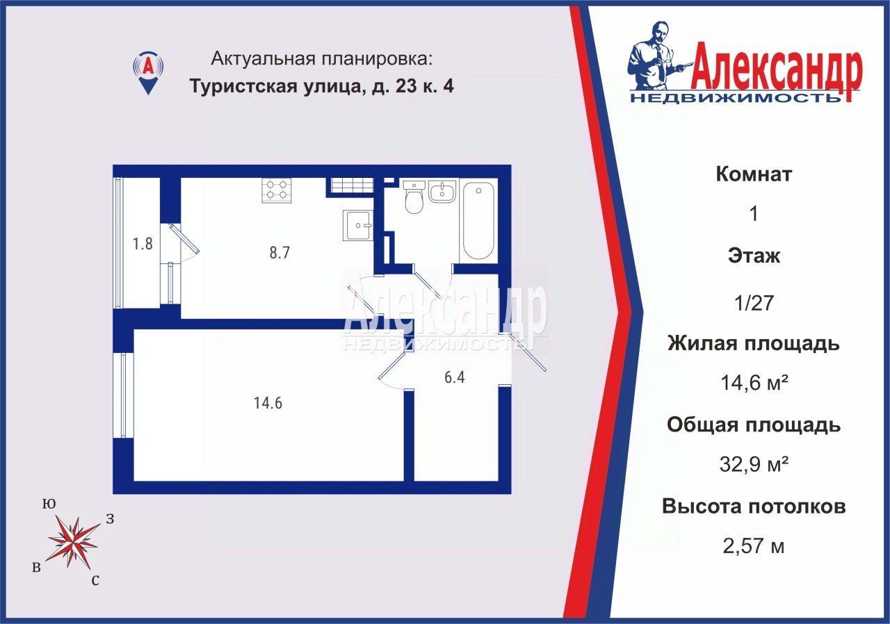 продам 1-к, Туристская, 23 корп. 49 490 000 ₽