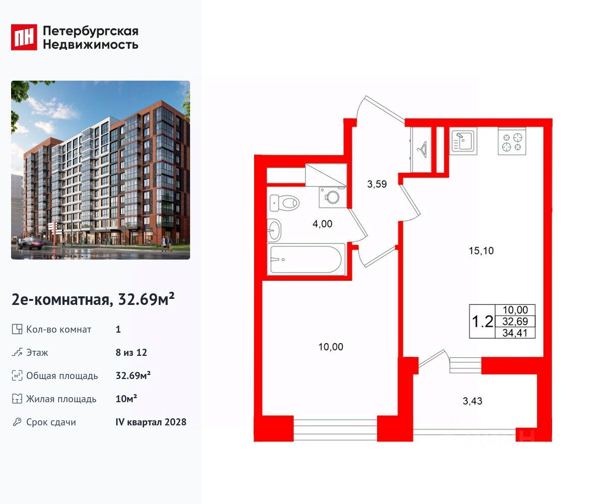 Удобная, классическая, функциональная европланировка, большая кухня-гостиная 15.1 м², вместительная прихожая 3.59 м². Общая площадь квартиры - 32.69 м², жилая 10 м², высота потолка 2.77 м.
