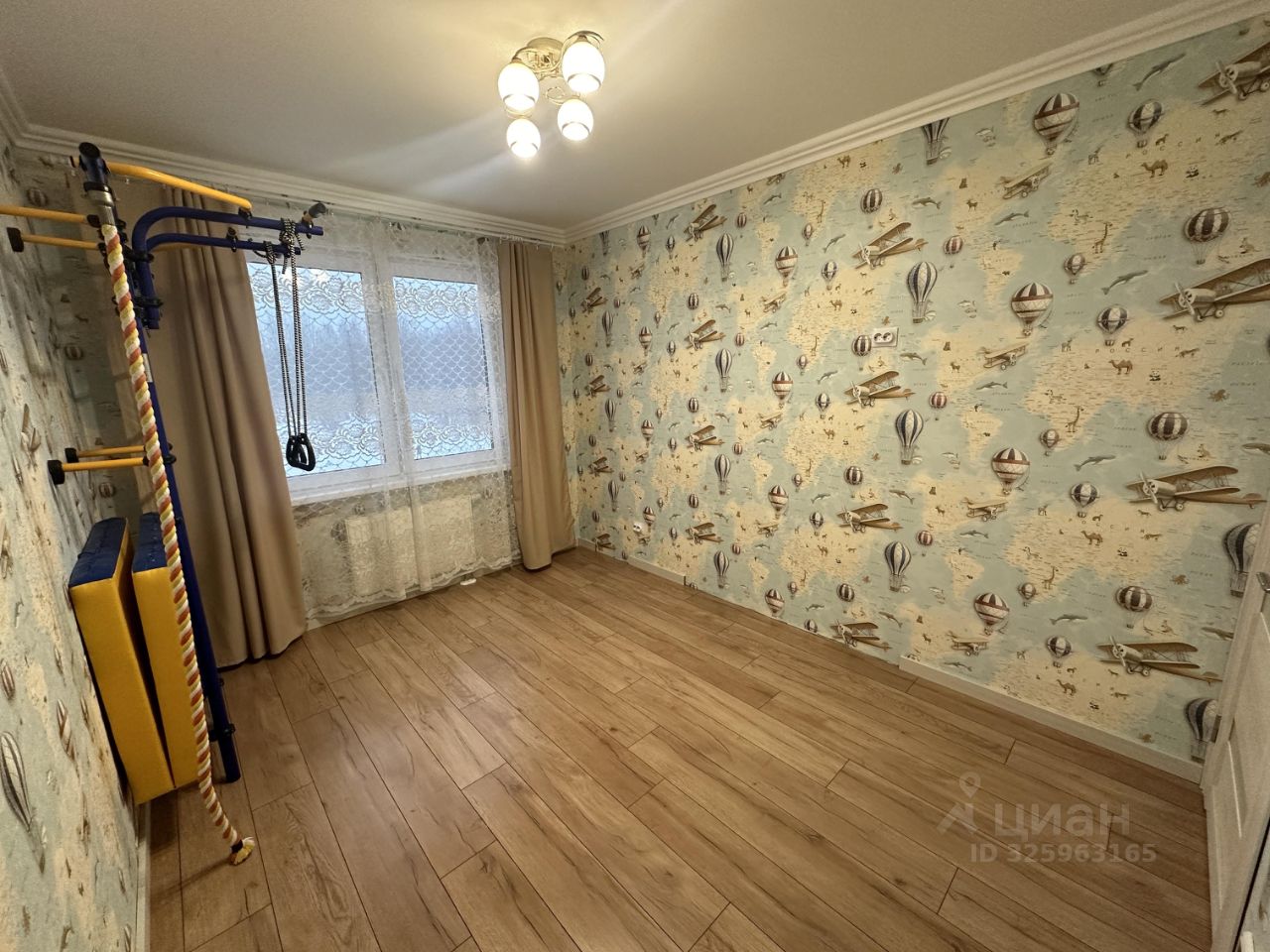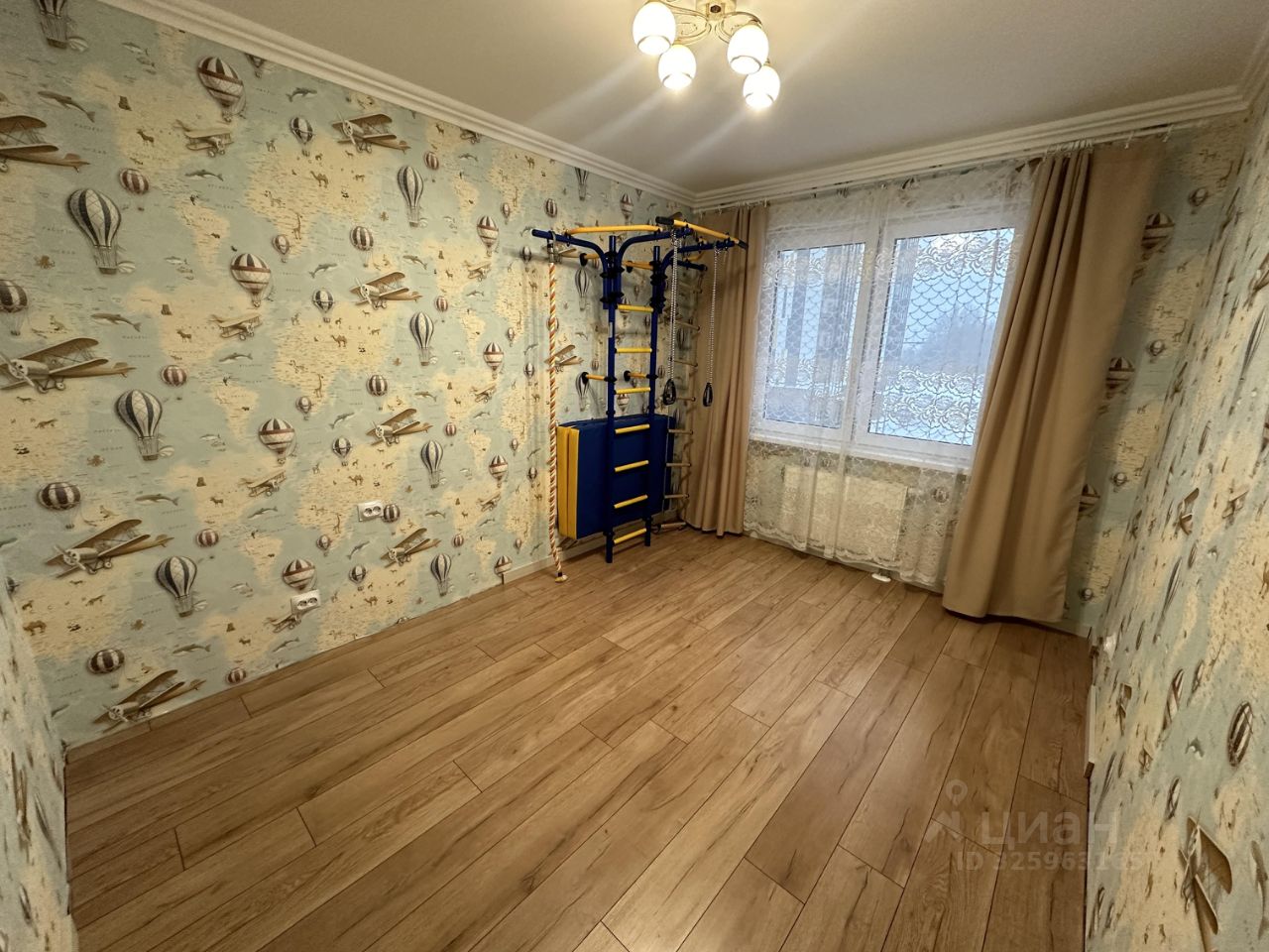 В маленькой комнате теплые полы, шведская стенка. Обставим эту комнату мебелью под ваши потребности (диван/кровать/двухъярусная кровать, шкаф/комод, письменный стол).
