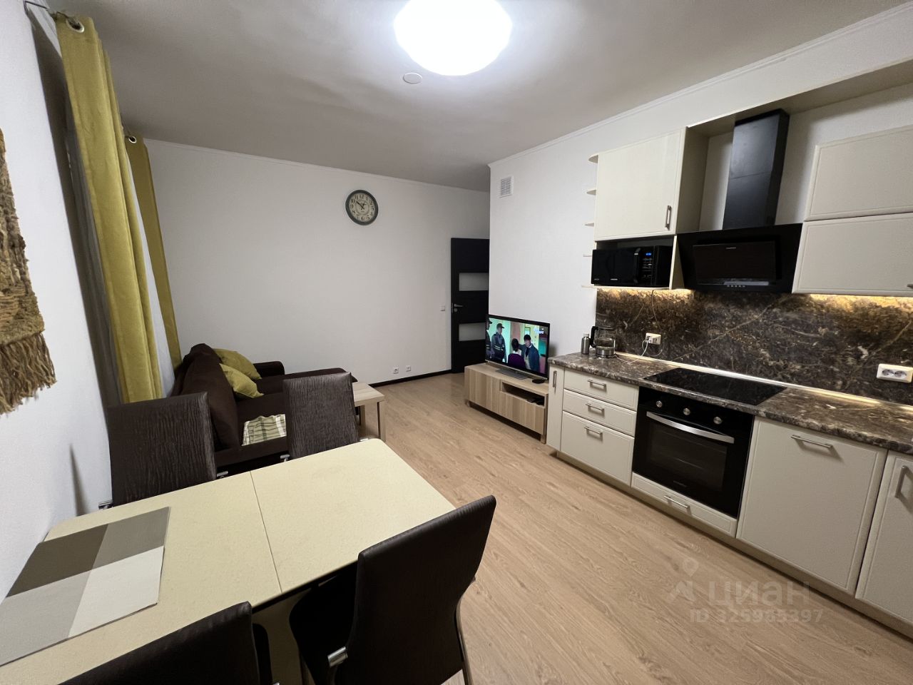 В квартире есть все необходимое для комфортной жизни. Просторная кухня площадью 19.11 квадратных метров оборудована современной мебелью и техникой: холодильник, посудомоечная машина и стиральная машина. В гостиной установлены телевизор и удобная мебель. Ванная комната с полноценной ванной, а также отдельным санузлом помогут избежать утренних очередей.