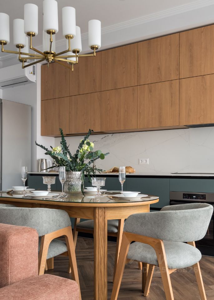 Качественный ремонт с использованием современных материалов, много дерева, нейтральные тона, вся необходимая техника.