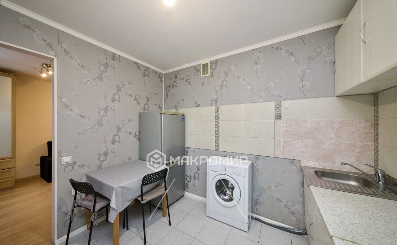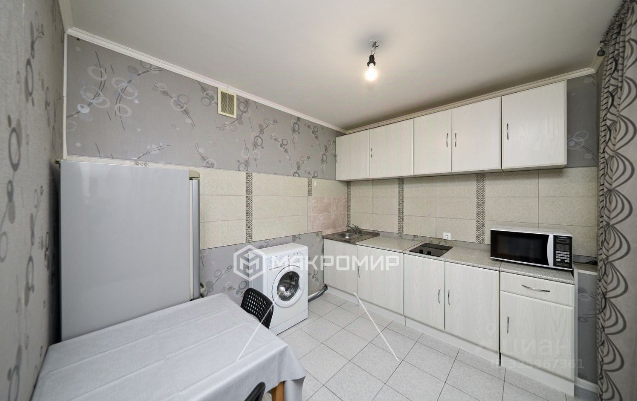 Есть всё необходимое для проживания: два дивана, два шкафа, кухонный гарнитур, двухкамерный холодильник, стиральная машинка, микроволновая печь, обеденный гарнитур, телевизор, чайник. Проведён WiFi.
