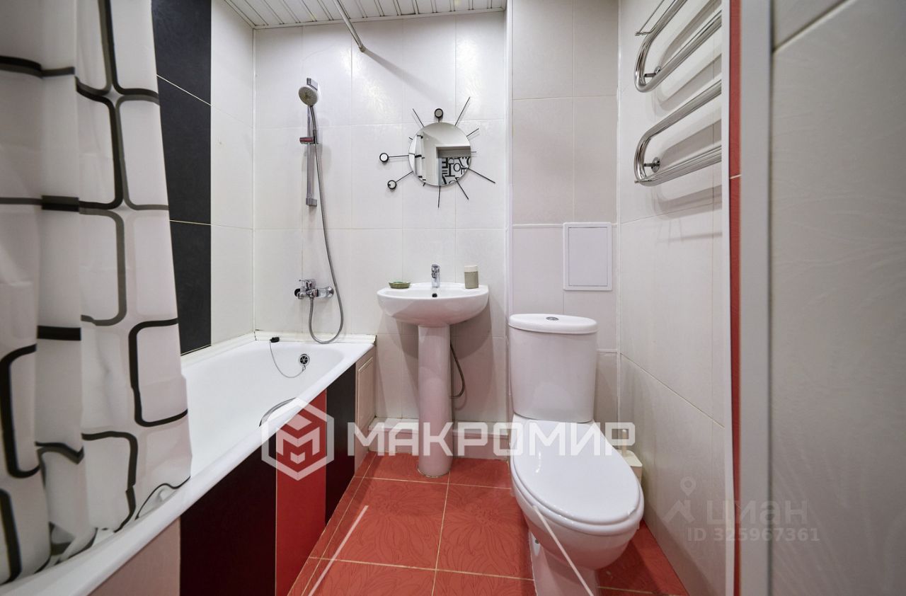 Совмещённый санузел с полноценной ванной, просторный застеклённый балкон.