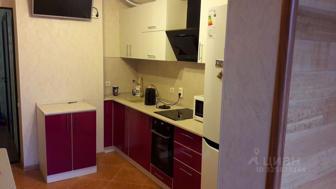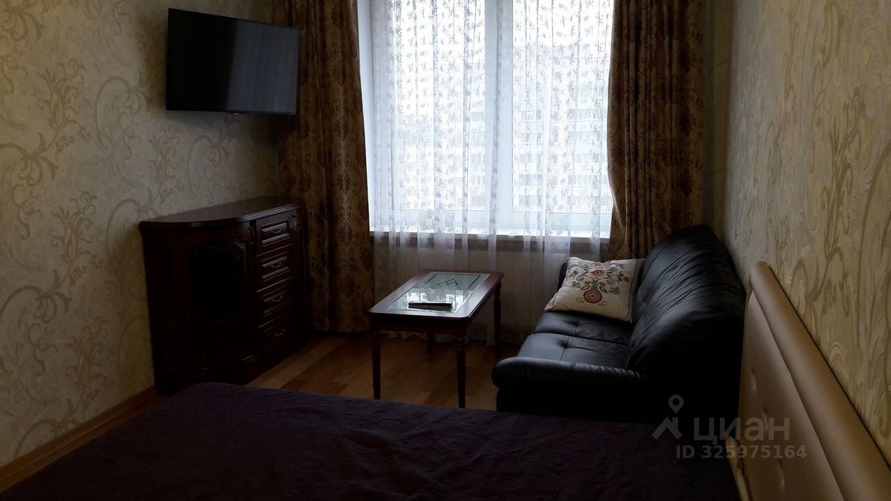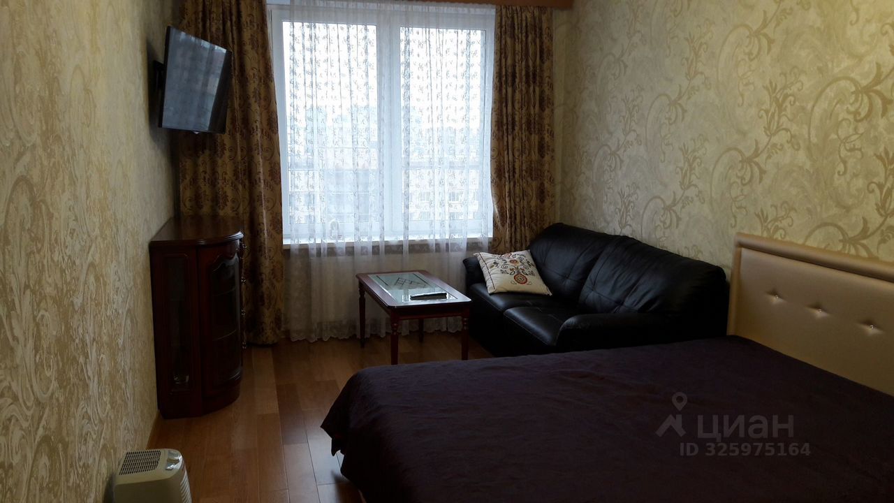 В квартире сделан качественный евроремонт. Просторная и светлая комната обставлена современной мебелью. Есть вся необходимая техника: холодильник, телевизор и стиральная машина. Интерьер выполнен в нейтральных тонах, что создаёт атмосферу комфорта и уюта. Санузел совмещённый, современный и удобный.