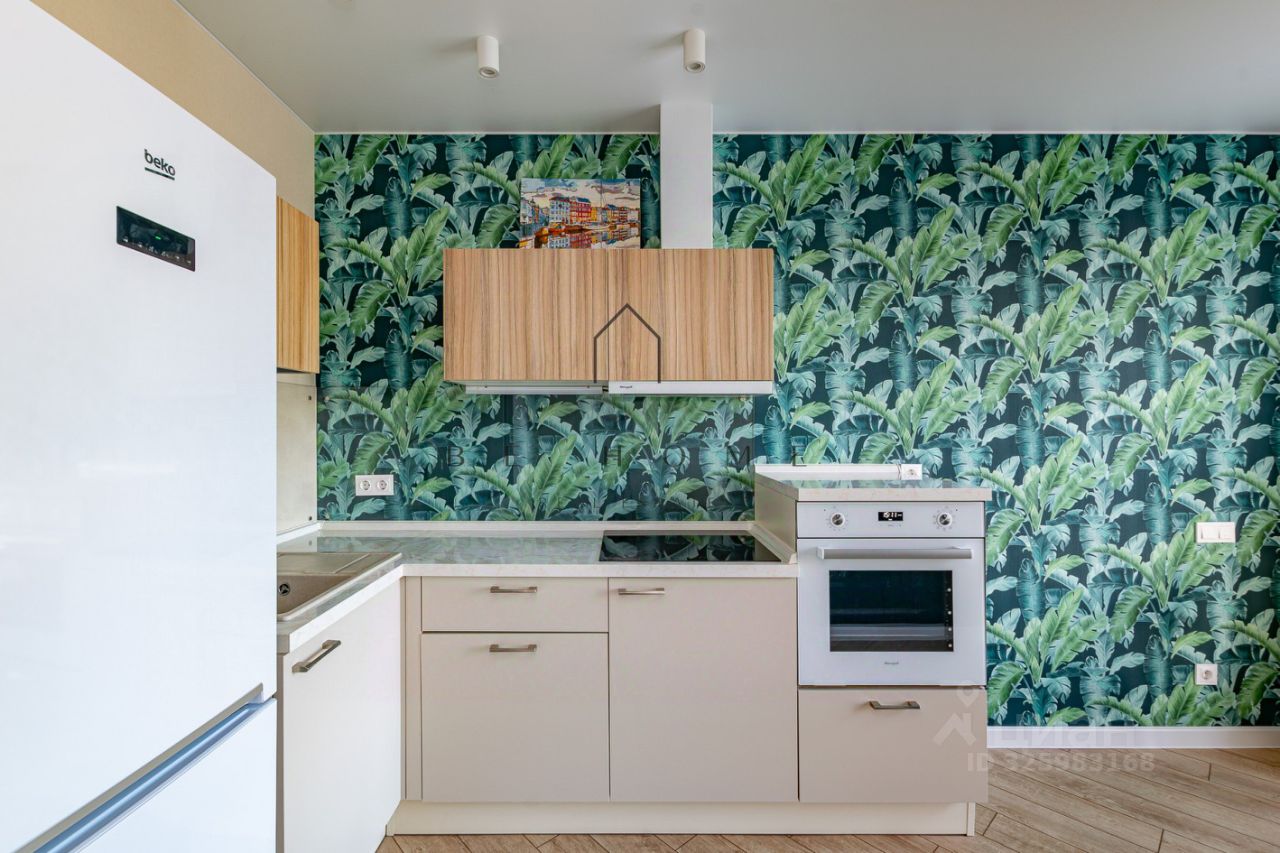 Дизайн-проект в эко-стиле. Панорамные окна в кухне и спальне. Оборудованное пространство гардеробной. Площадь кухни позволяет разместить небольшой диван для отдыха. Кондиционер. Застекленная лоджия.
