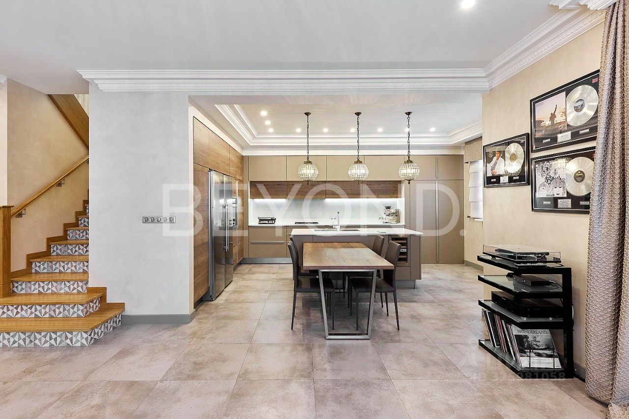 Предлагается к продаже дом 245 кв. м в самой востребованной локации, расположенной в 15 минутах от ''Лахта Центра''. На первом этаже просторная гостиная с туннельным камином. Камин выполнен по индивидуальному проекту, отделан цельной плиткой DECORATORI BASSANESI, и имеет выход на две комнаты. Кухня с австрийскими фасадами Egger. Вся бытовая техника Siemens, Liebherr и Kubersberg. В кухне есть потайной вход в помещение для хранения продуктов, из которого есть выход в гараж. Столовая, с выходом на открытую террасу, гостевая комната и гостевой санузел. Второй этаж приватная зона: большой холл, две детские и мастер-спальня со своей ванной комнатой. Вся сантехника в доме - Jacob Delafon. Фасад дома облицован плиткой ''кабанчик'' - как во дворце Ксешинской.