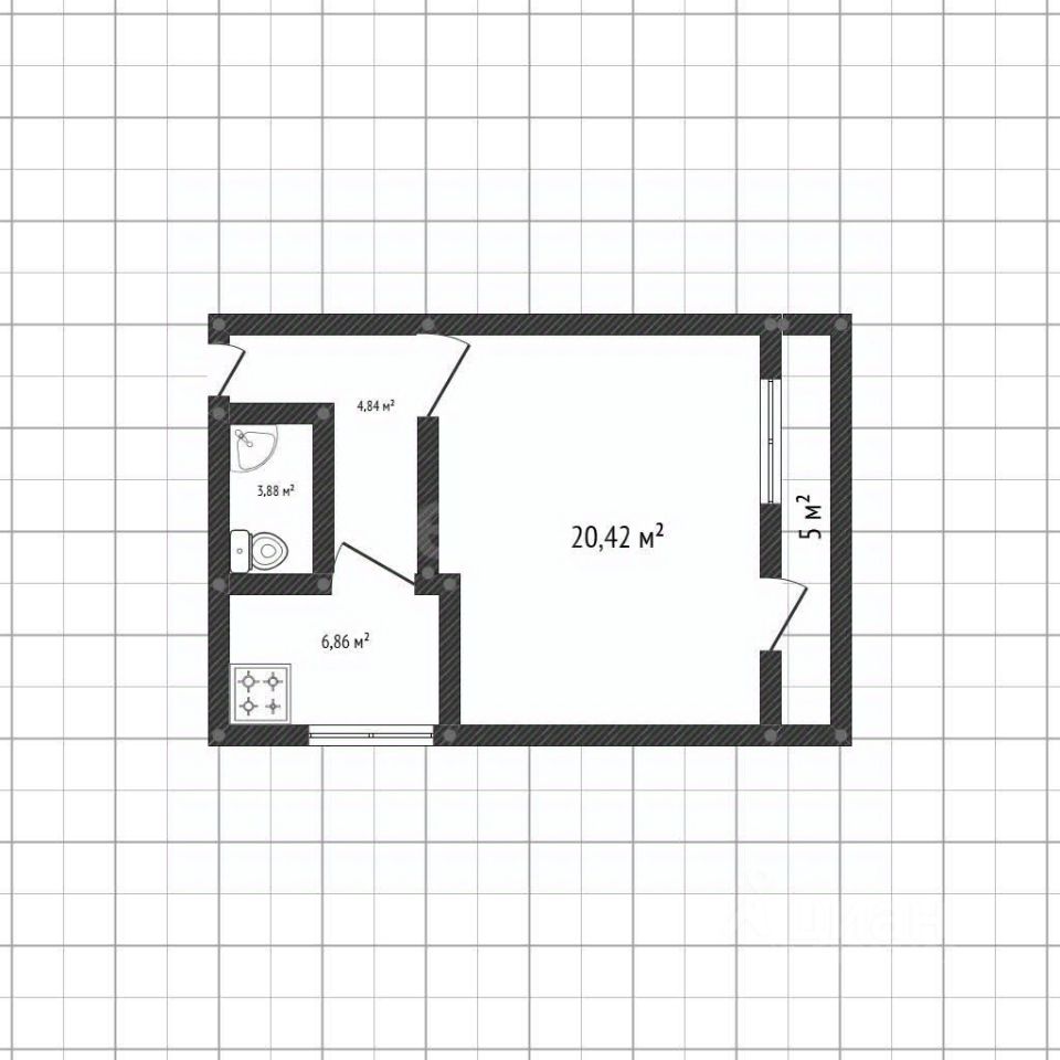 Квартира обладает продуманной планировкой. Уютная комната имеет доступ к балкону. Окна кухни выходят во двор. С/У совмещенный.