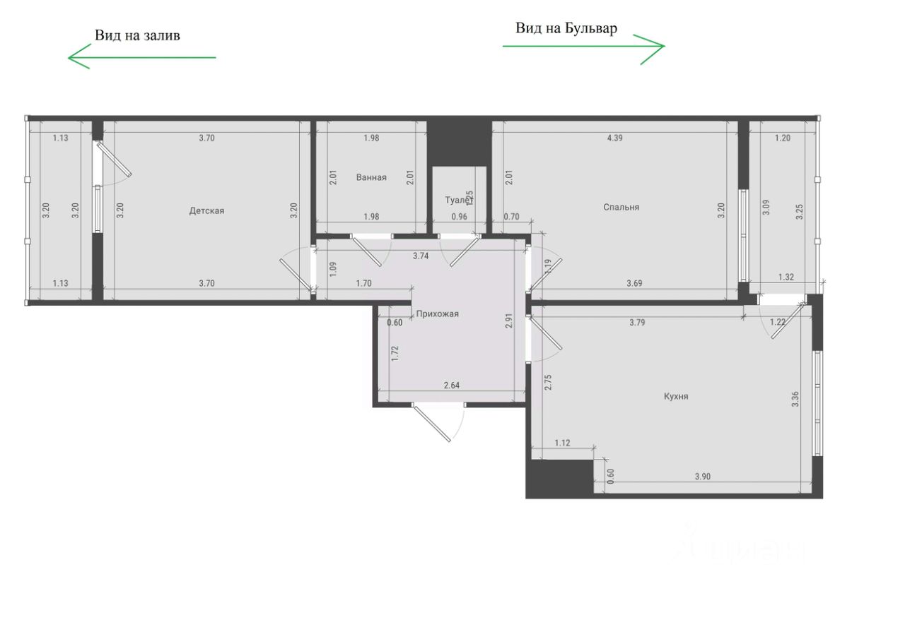Жилые комнаты позволят разместить мебель по желанию будущего собственника - просторная спальня со встроенным шкафом и детская комната. Либо во второй комнате можно организовать зону кабинета, для тех кто предпочитает работать из дома. В просторной прихожей разместился встроенный шкаф, при этом осталось достаточно простора для декоративного зеркала и банкетки.
