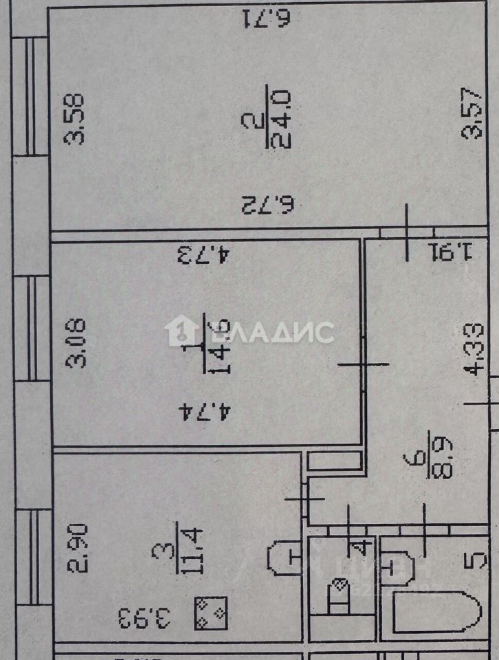 Общая площадь квартиры составляет 62,5 кв. м, из которых 38,6 кв. м — жилая площадь. Две комнаты изолированы, их площади — 14,6 кв. м и 24 кв. м. Площадь кухни — 11,4 кв. м. Продуманная планировка и просторная площадь делают эту квартиру идеальным выбором для семей с детьми.