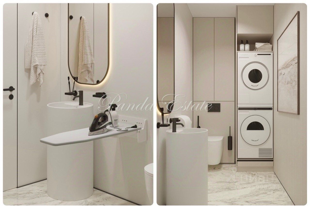 Большая кухня- гостиная 53м2., главная мастер-спальня (44 м2) со своим с/у и гардеробной мастер-спальня 2 (33 м2.) со своим с/у и гардеробной мастер-спальня 3 (28 м2) со своим с/у и гардеробной отдельная постирочная комната 5 м2 (есть стиральная и сушильная машина) 4 с/у и 3 гардеробные комнаты
