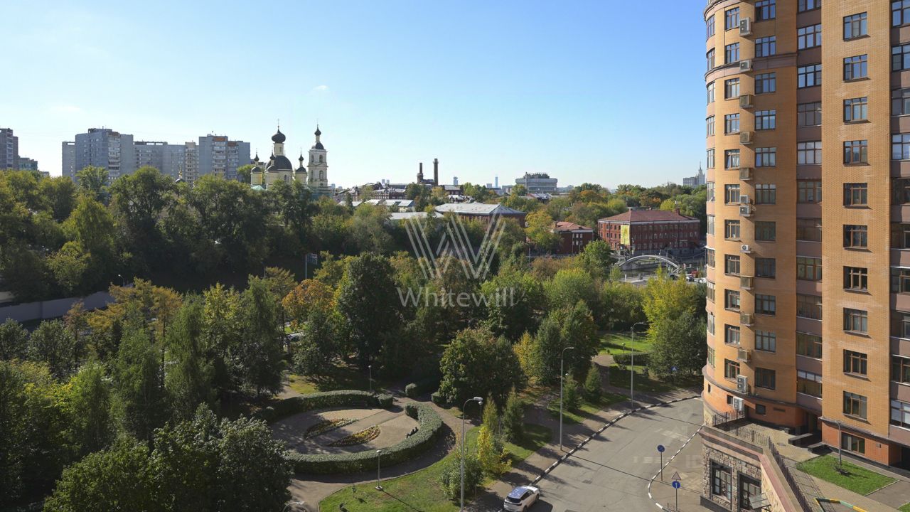 Планировка включает гостиную-столовую с обеденной зоной и камином, кухню, мастер-спальню с собственной ванной комнатой и гардеробной, кабинет, гостевой санузел, пять балконов, гардеробную и холл на первом уровне. На втором этаже спланированы гостиная, две спальни со своими санузлами, гардеробная и просторная терраса с лаунж-зоной. Благодаря высоким потолкам и большому количеству окон пространство наполнено естественным светом и воздухом. Из окон открываются виды на парк, набережную реки Яуза, Храм Живоначальной Троицы и благоустроенную территорию комплекса. Предусмотрено два машино-места в подземном паркинге за дополнительную плату.