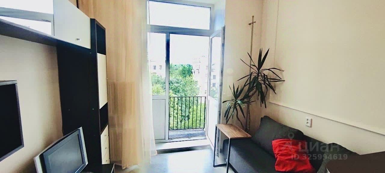 О КВАРТИРЕ: Стильная студия 19 м² на 6 этаже (соседей сверху нет) в кирпичном доме. Комната автономна и изолирована , со своей кухней и санузлом Высокие потолки 3.2 м, уютный балкон с видом на зеленый двор, Парк Победы и СКА арену. Совмещённый санузел, вся техника и мебель остаются. Wi-fi роутер. Квартира расположена в бывшем общежитии коридорного типа.