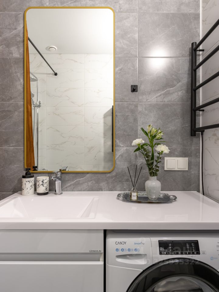 Санузел: ванная с необходимой мебелью, стиральной машиной и теплым полом.