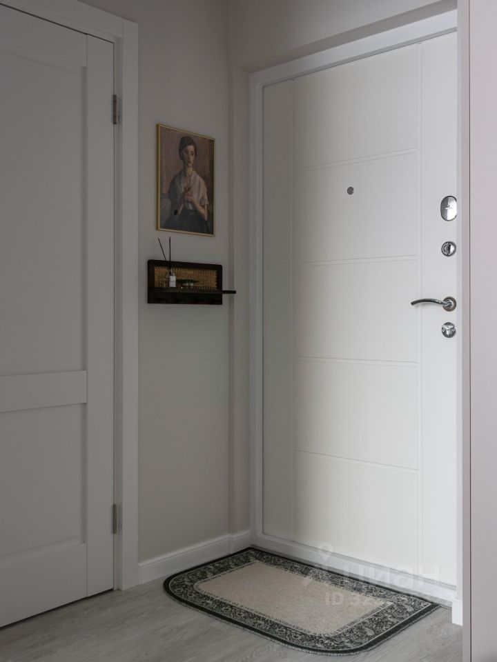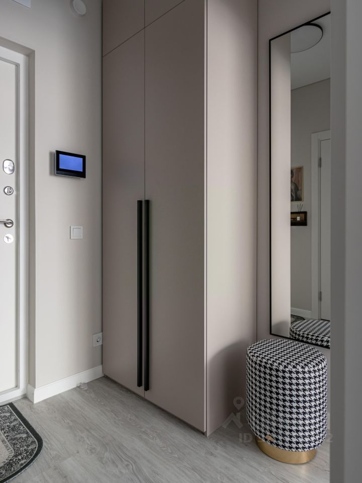Прихожая: шкаф, домофон, полочка для ключей, пуф.