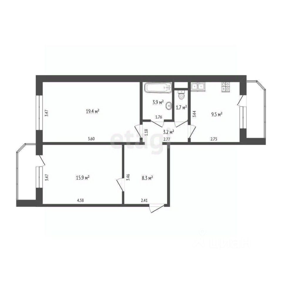 Два балкона с остеклением . Санузел раздельный, все коммуникации в исправном состоянии. Квартира полностью готова к заселению.
