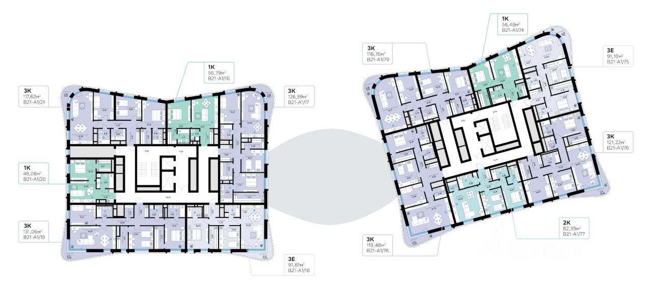 В продаже — однокомнатная квартира с чистовой отделкой, общей площадью 56,79 кв. м. Квартира расположена на пятом этаже одинадцатиэтажной секции корпуса класса Адвансд в новом районе СберСити, который строит Сбер. Дом находится на второй береговой линии Москвы-реки.