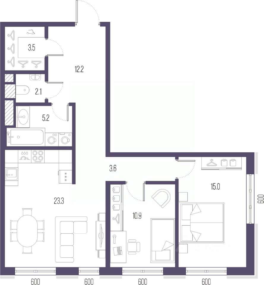 Квартира с двумя спальнями в ЖК ''Малоохтинский, 68'' на 7 этаже. Угловая квартира, очень светлая, естественная вентиляция при открытии окон. В квартире один раздельный санузел. Высота потолков 3.0 м.