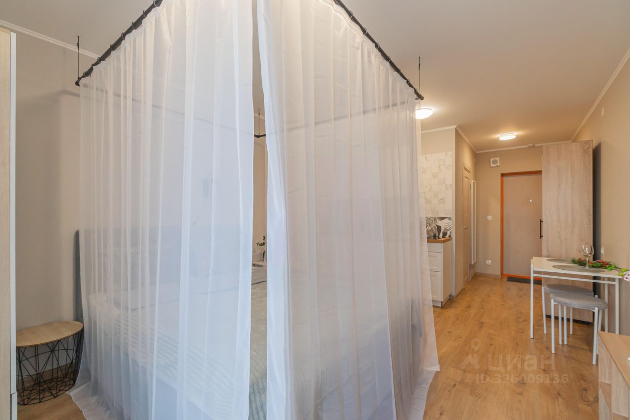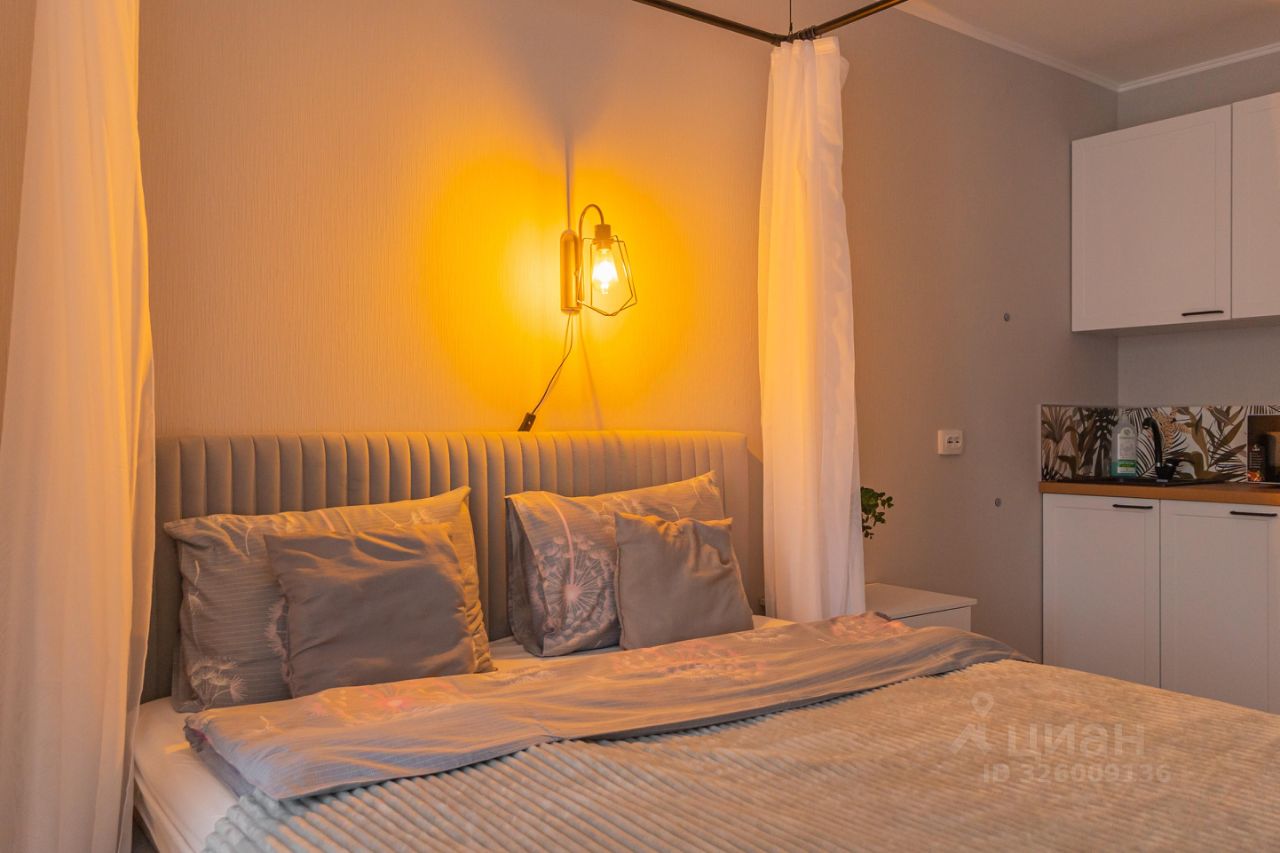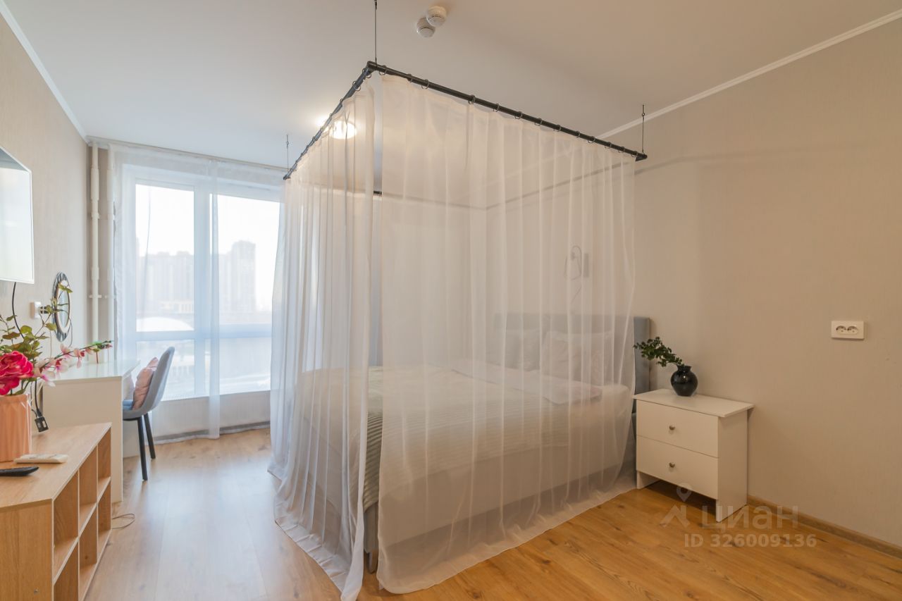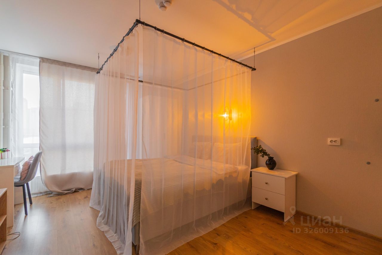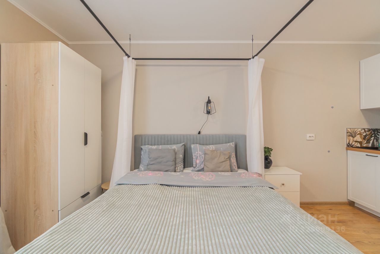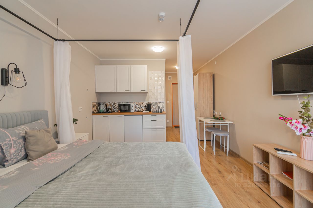 Уютные апартаменты со спальней совмещенной с кухонной и обеденной зоной с балдахином