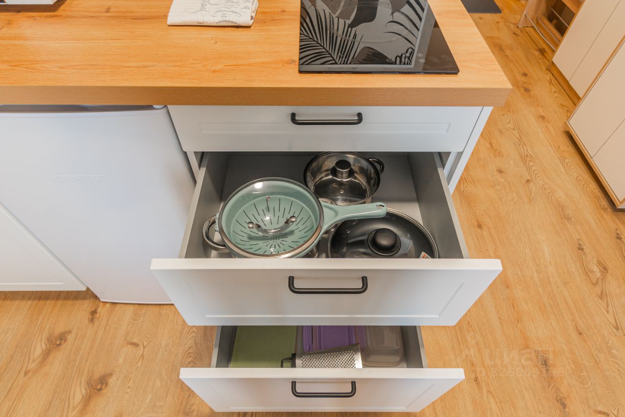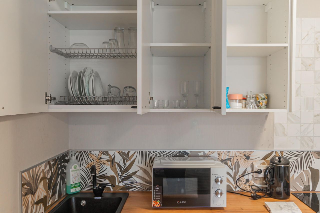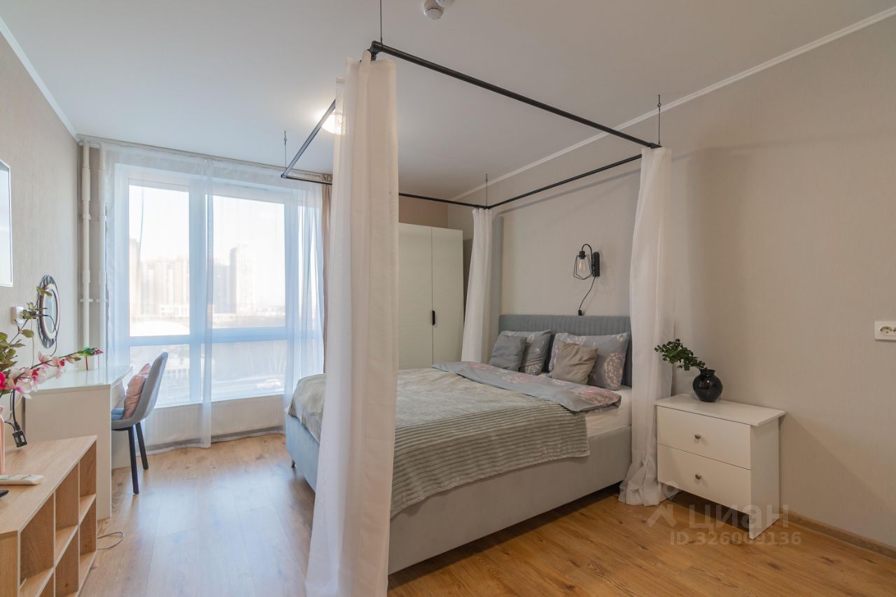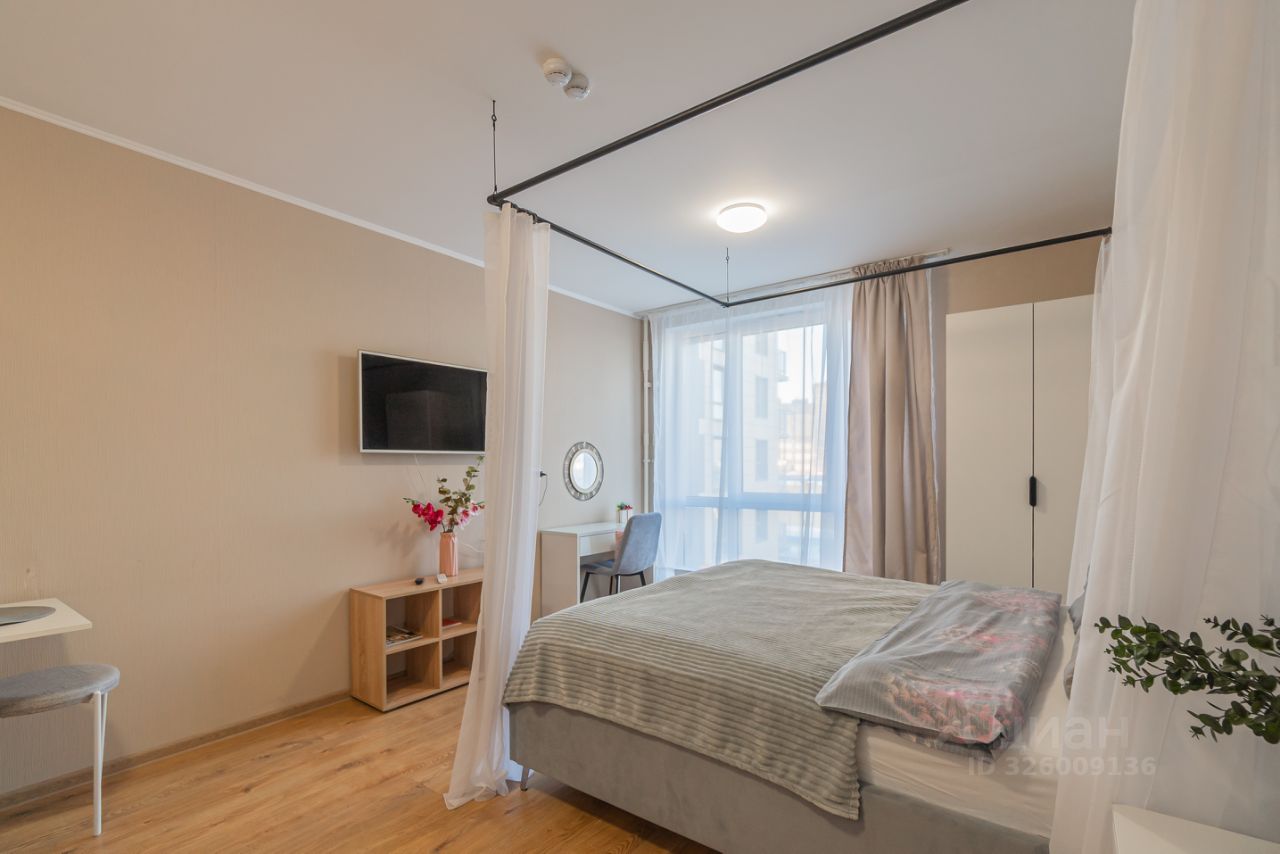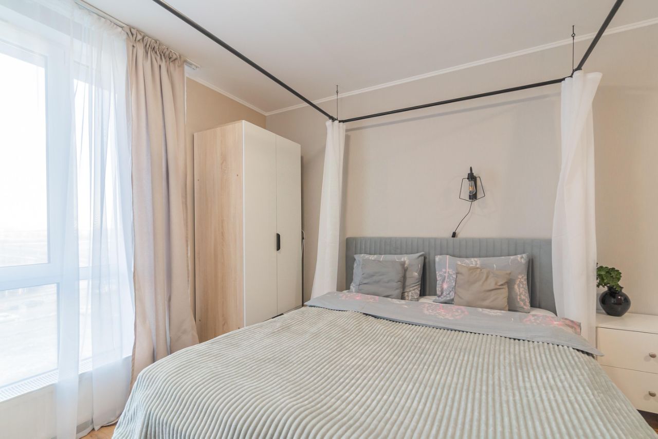 Уютные апартаменты со спальней совмещенной с кухонной и обеденной зоной с балдахином