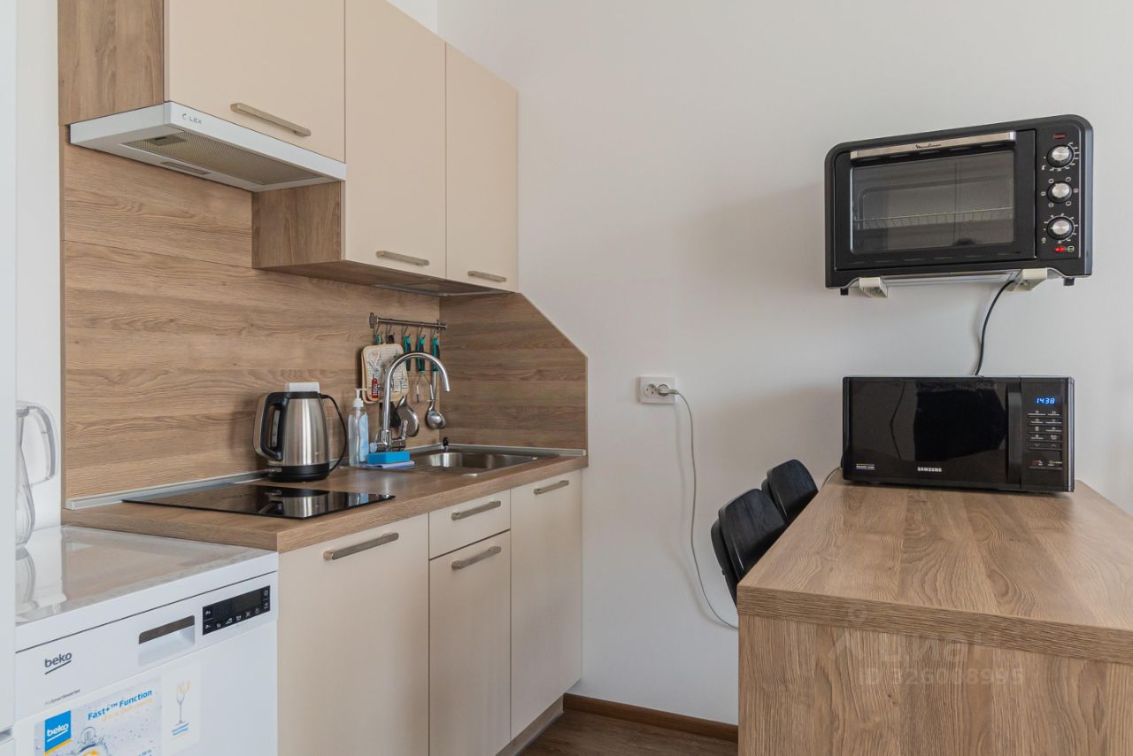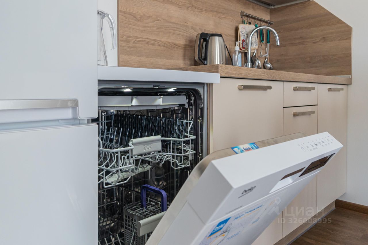 - обеденная зона (холодильник, чайник, микроволновка, варочная панель, столовая группа, посуда на 2 персоны, барная стойка со стульями, духовой шкаф, посудомойка )