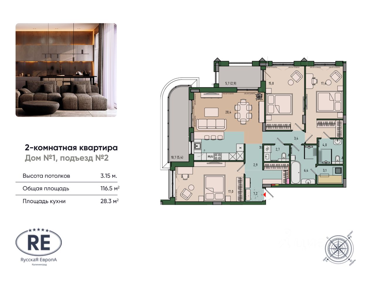 Общая площадь116,5 м2