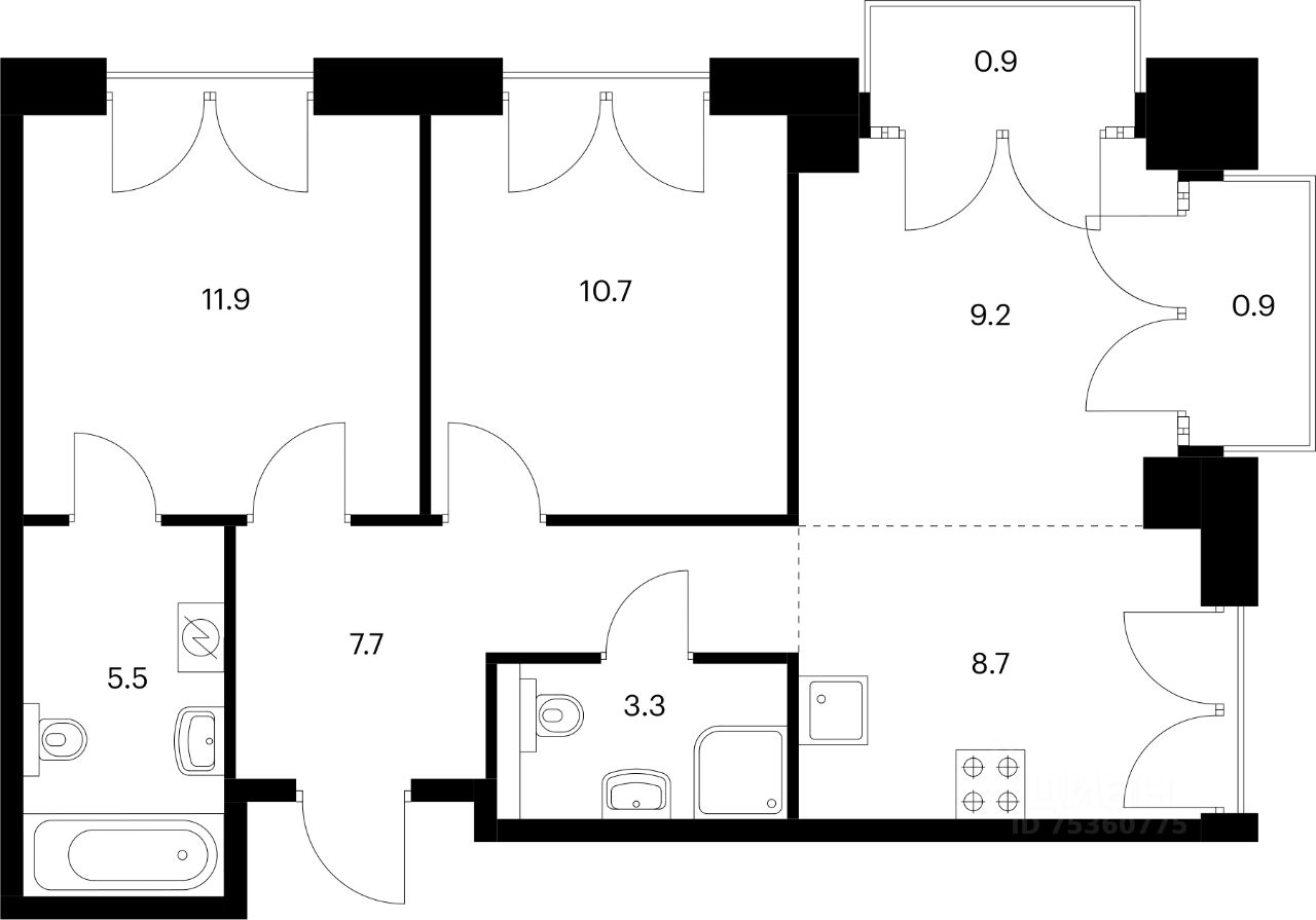 Во всех квартирах будут трёхметровые потолки и окна в пол.
