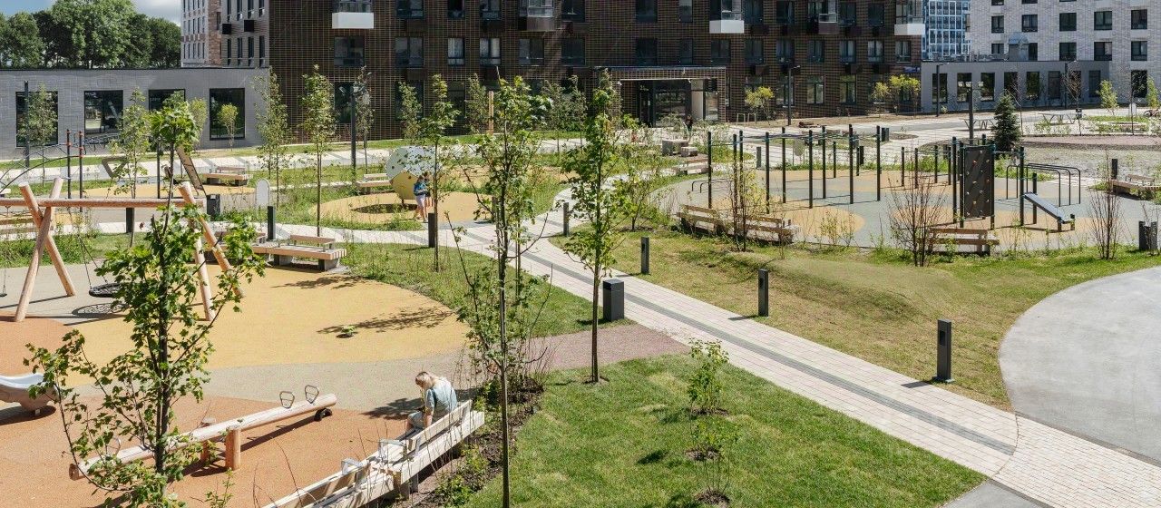 Жилой район строится по всем правилам ПИК-Стандарта: в зелёных дворах-парках появятся современные детские и спортивные площадки, пешеходный бульвар и другие места для отдыха. На первых этажах разместятся магазины, кафе и другие сервисы. Во дворах не будет автомобилей, а для гостей предусмотрены парковочные места.
